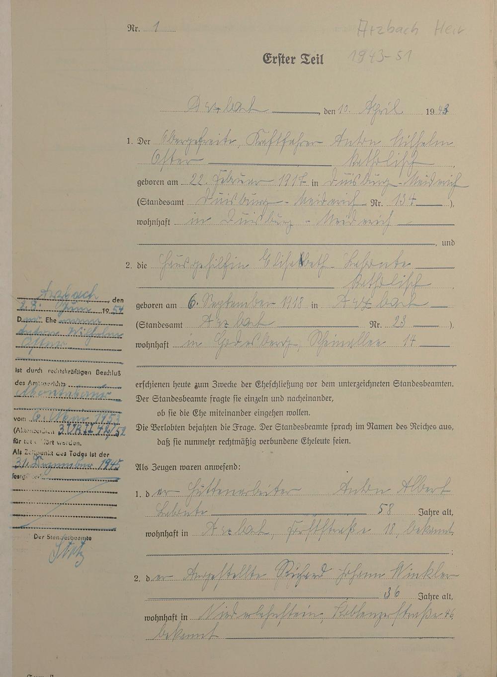 Heiratsregister 1943