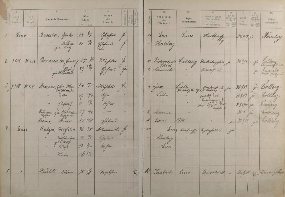 Melderegister 1909 - 1914