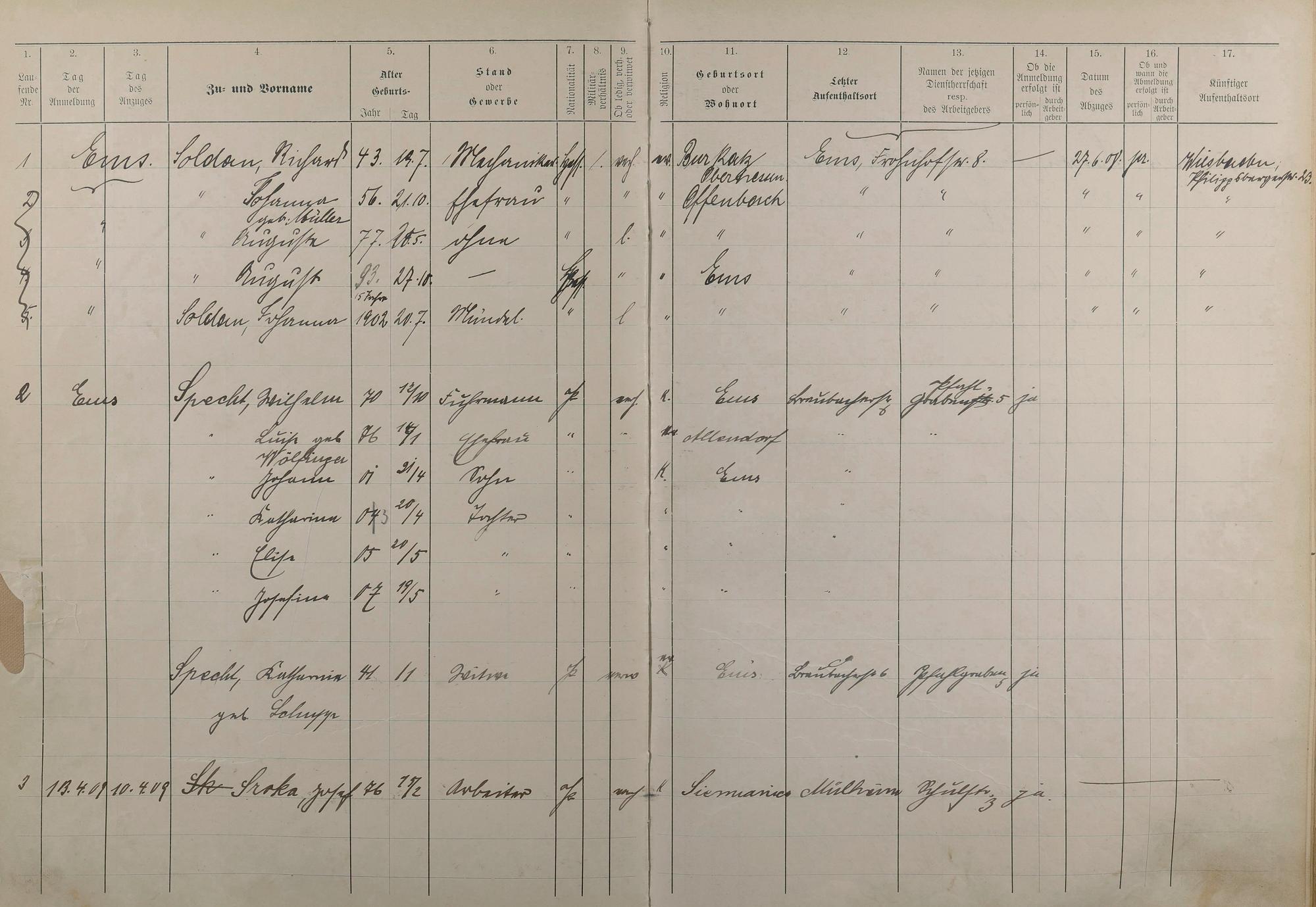 Melderegister 1909 - 1914