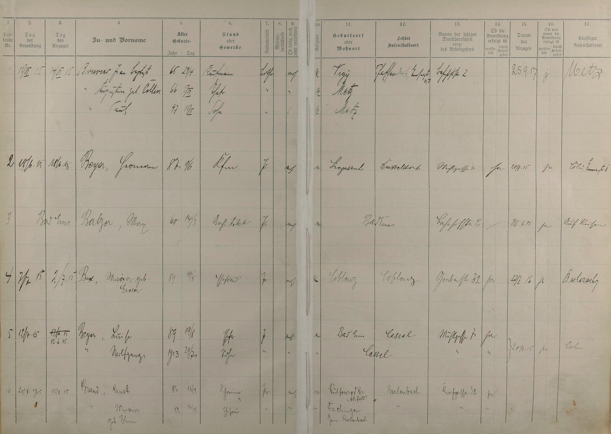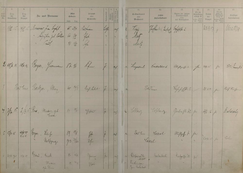 195: Melderegister 1915 - 1923