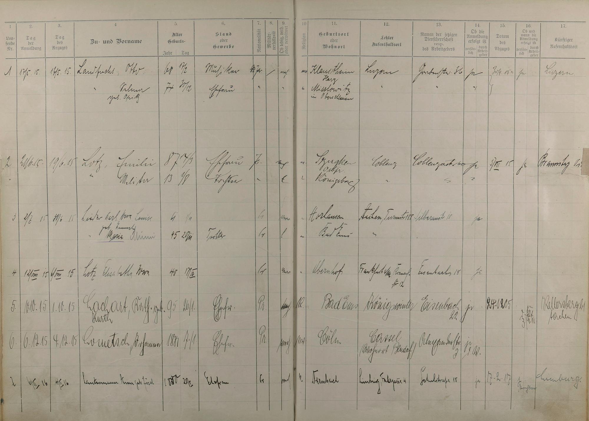 195: Melderegister 1915 - 1923