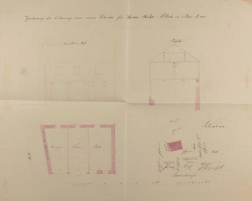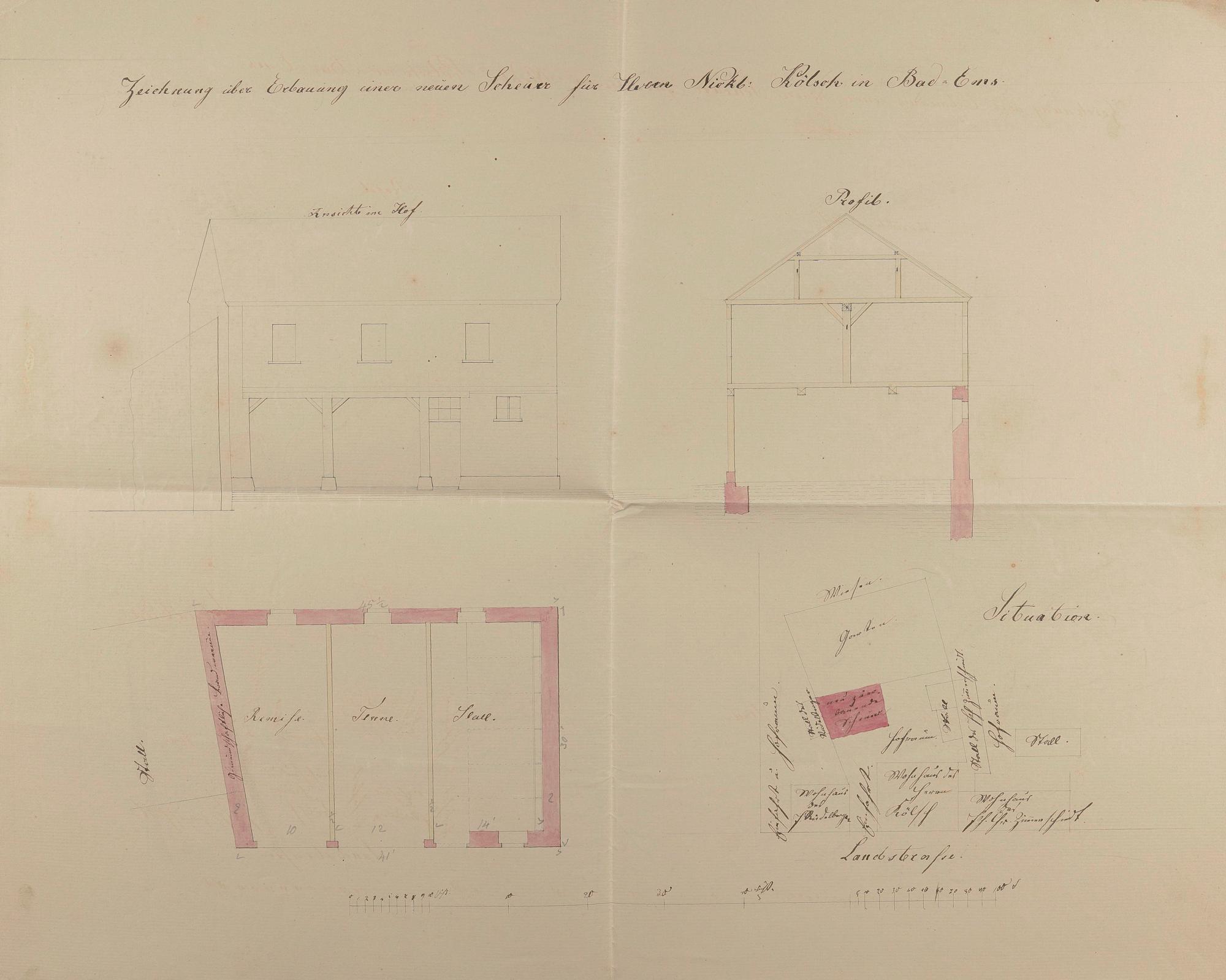 Scheune am Haus "Zur Stadt Straßburg" des Nicolaus Kölsch und Elisabethe Louise geb. Lemler/Karl Peter Eberhardt und Henriette geb. Hellwig/Frieda Auguste Wilhelmine Wittmann geb. Eberhardt/Hedwig Lina Lutz geb. Eberhardt/Erich Ludwig Stanislaus Schwub/Alois Fuhrmann und Anna geb. Schommer/Dr. Hans Dadder Bad Ems Römerstraße Nr. 80 Flur 98 Nr. 50/2