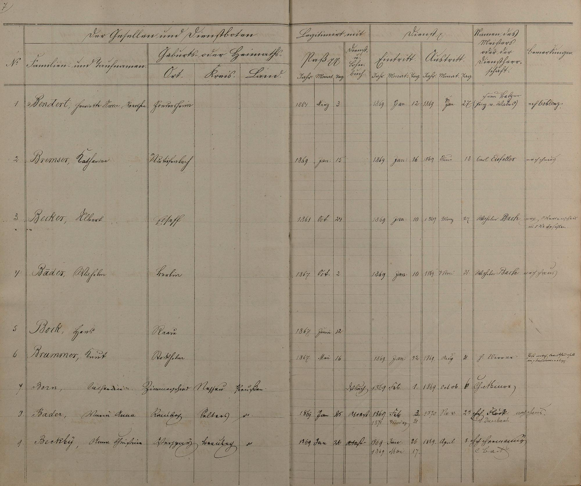 Melderegister der Gesellen und Dienstboten