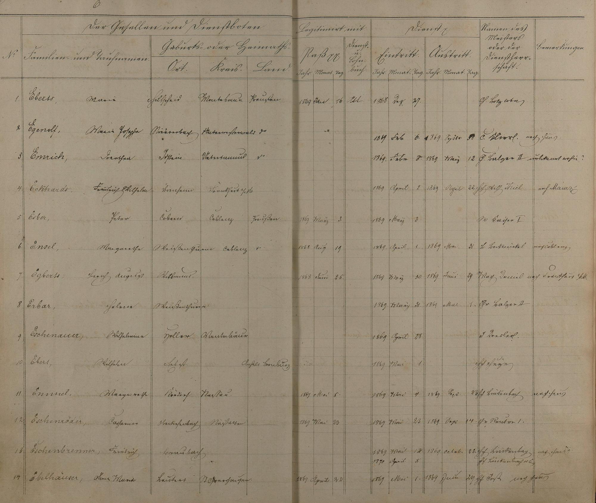 Melderegister der Gesellen und Dienstboten