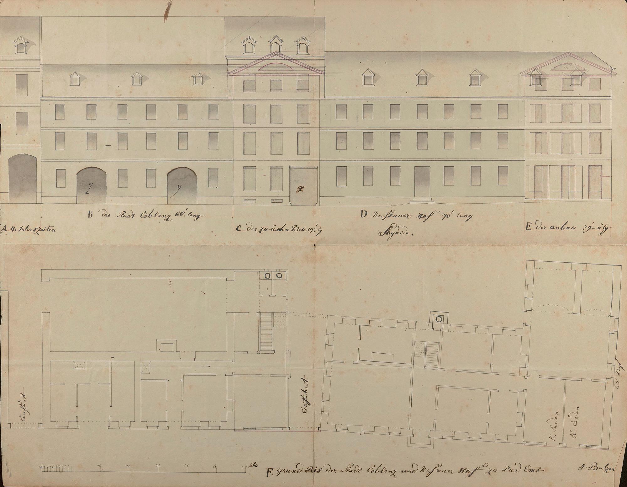 Anbau am Hotel "Zur Stadt Koblenz"/"Europäischer Hof" des Jacob Balzer/Wilhelm Balzer und Catharina geb. Dresler/Emil Balzer und Eugenie geb. von Son/Max Huyn und Bertha geb. Balzer/Heinrich Becker Königlichen Kreisbauinspektion Bad Ems Römerstraße Nr. 5 Flur 87 Nr. 4/1