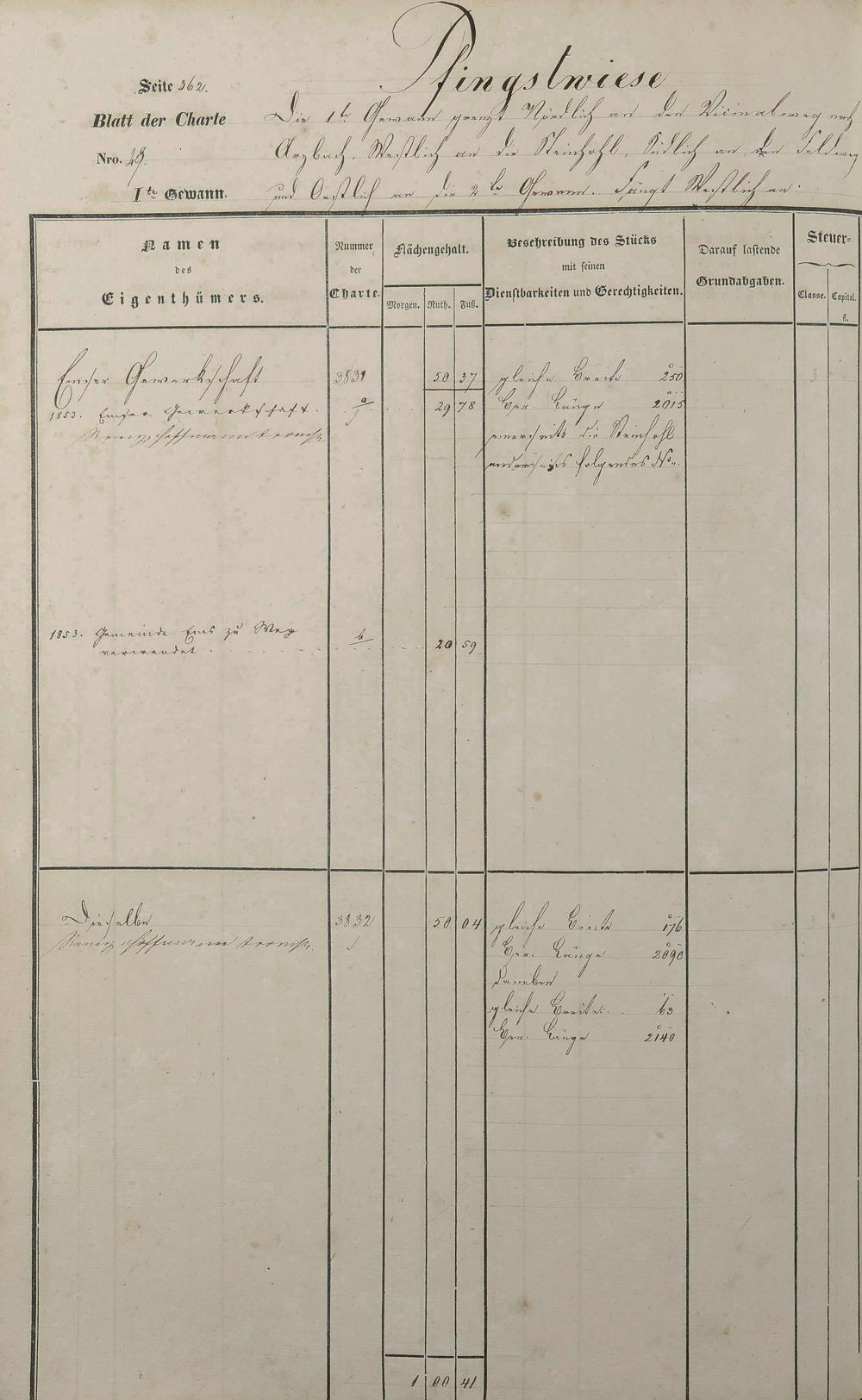 Lagerbuch 1838 aufgestellt von Geometer Gottschalk Nr. 3178 - 4174