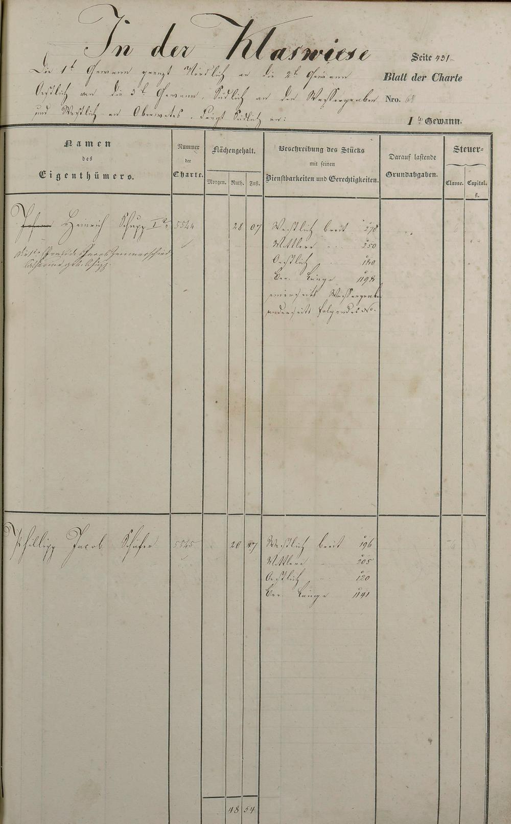 Lagerbuch 1838 aufgestellt von Geometer Gottschalk Nr. 4771 - 5861