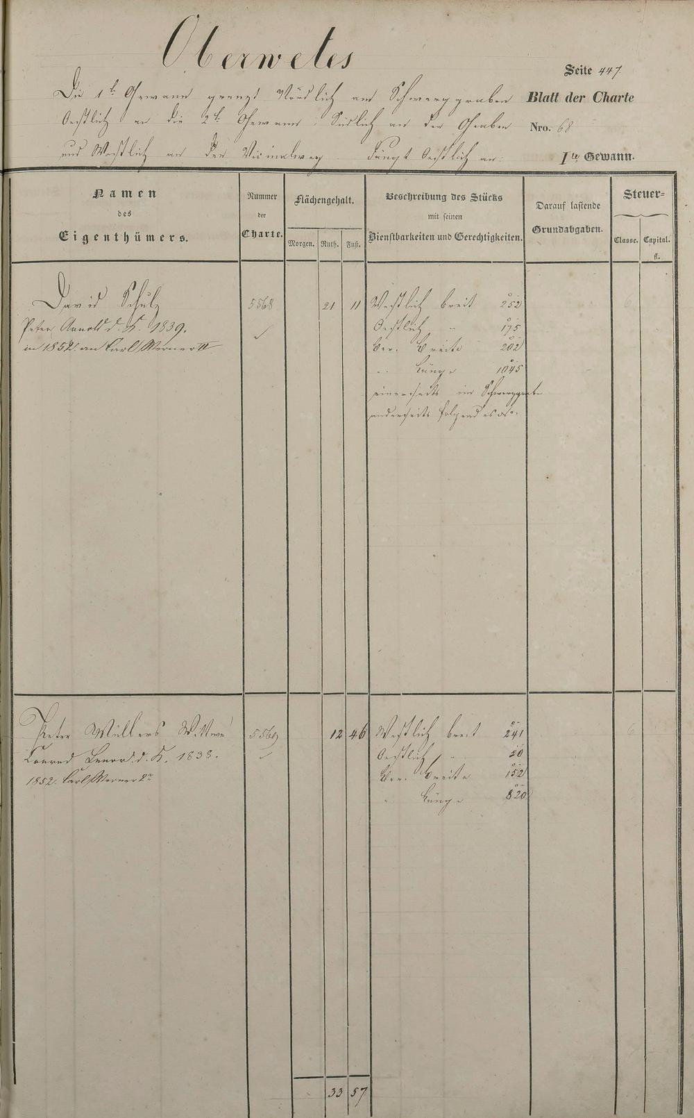 Lagerbuch 1838 aufgestellt von Geometer Gottschalk Nr. 4771 - 5861