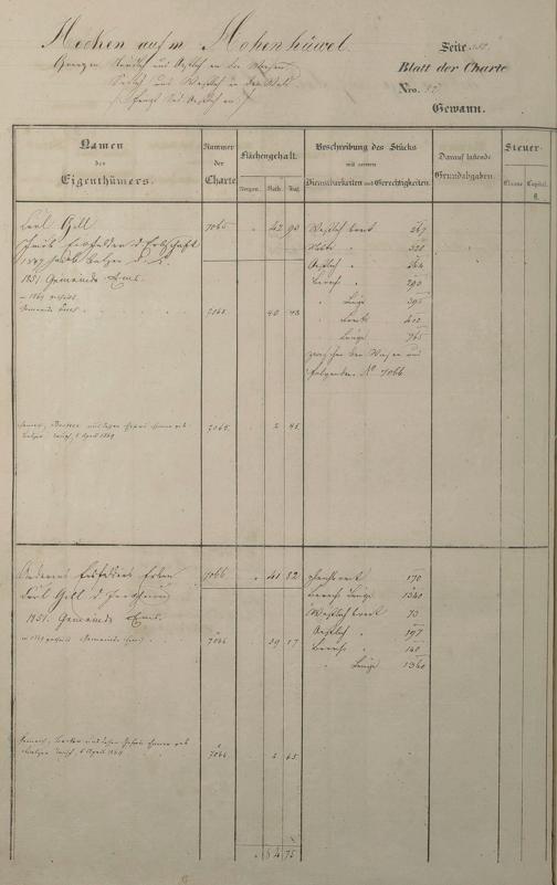Lagerbuch 1838 aufgestellt von Geometer Gottschalk Nr. 6350 - 7107