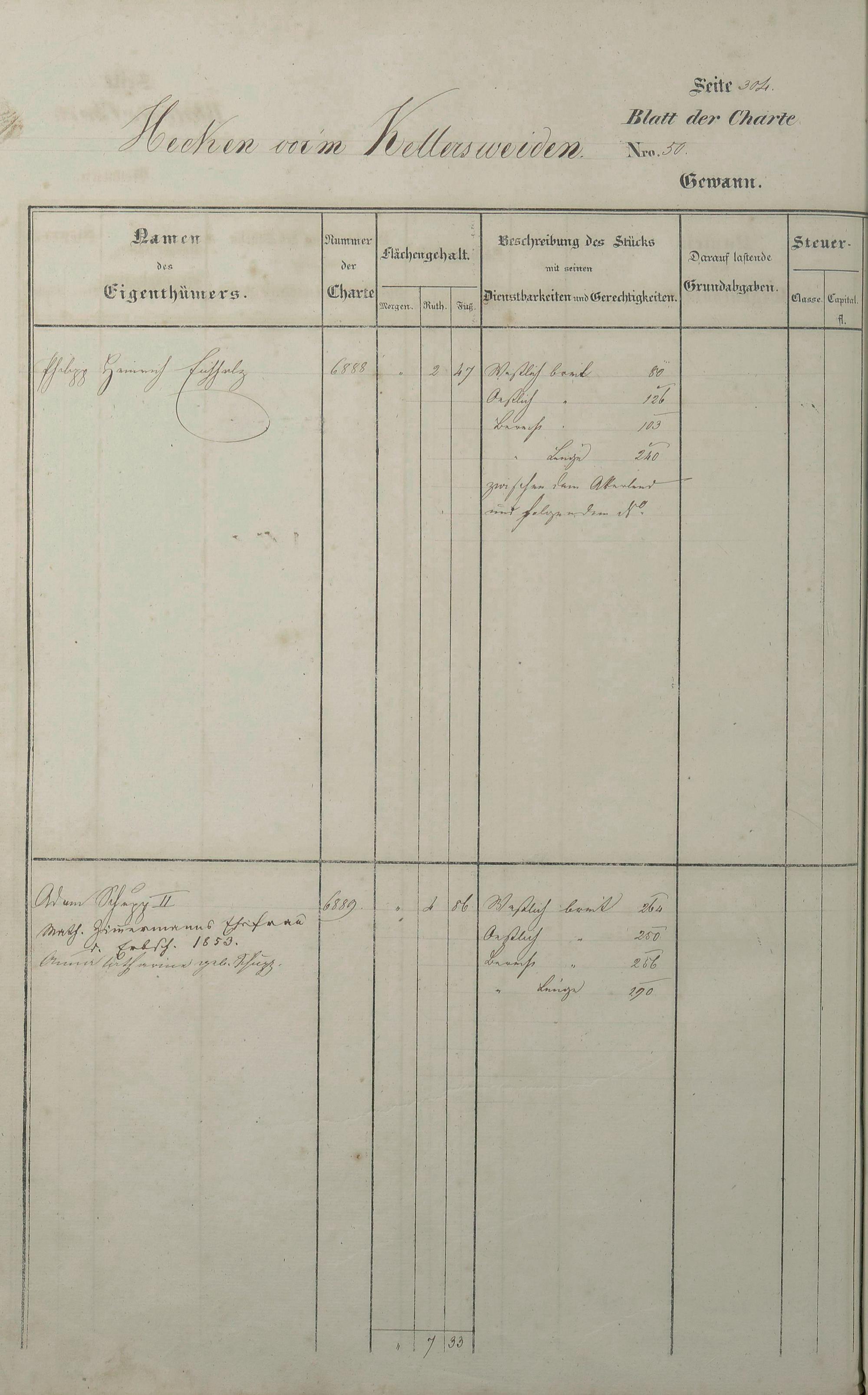 Lagerbuch 1838 aufgestellt von Geometer Gottschalk Nr. 6350 - 7107