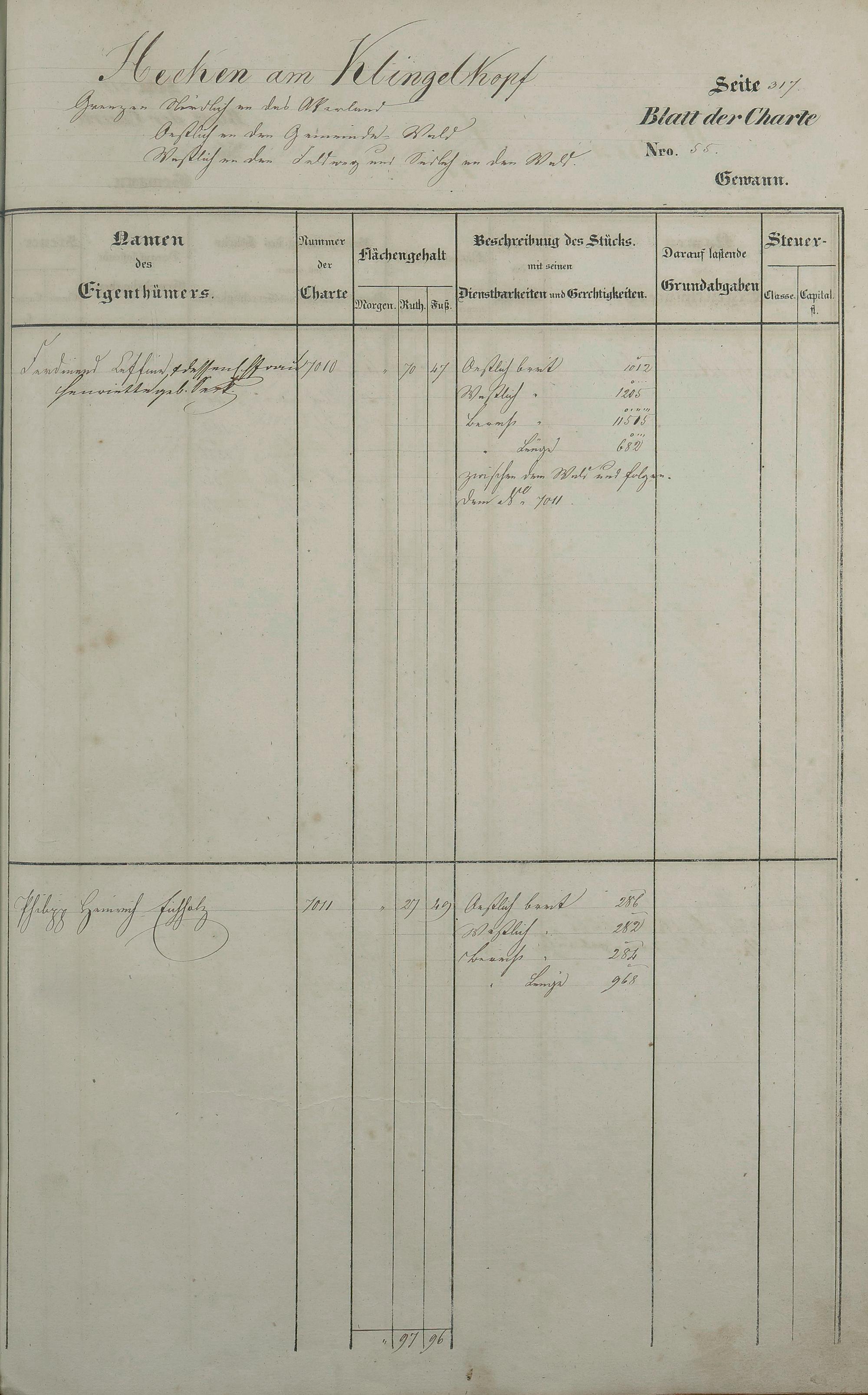 Lagerbuch 1838 aufgestellt von Geometer Gottschalk Nr. 6350 - 7107