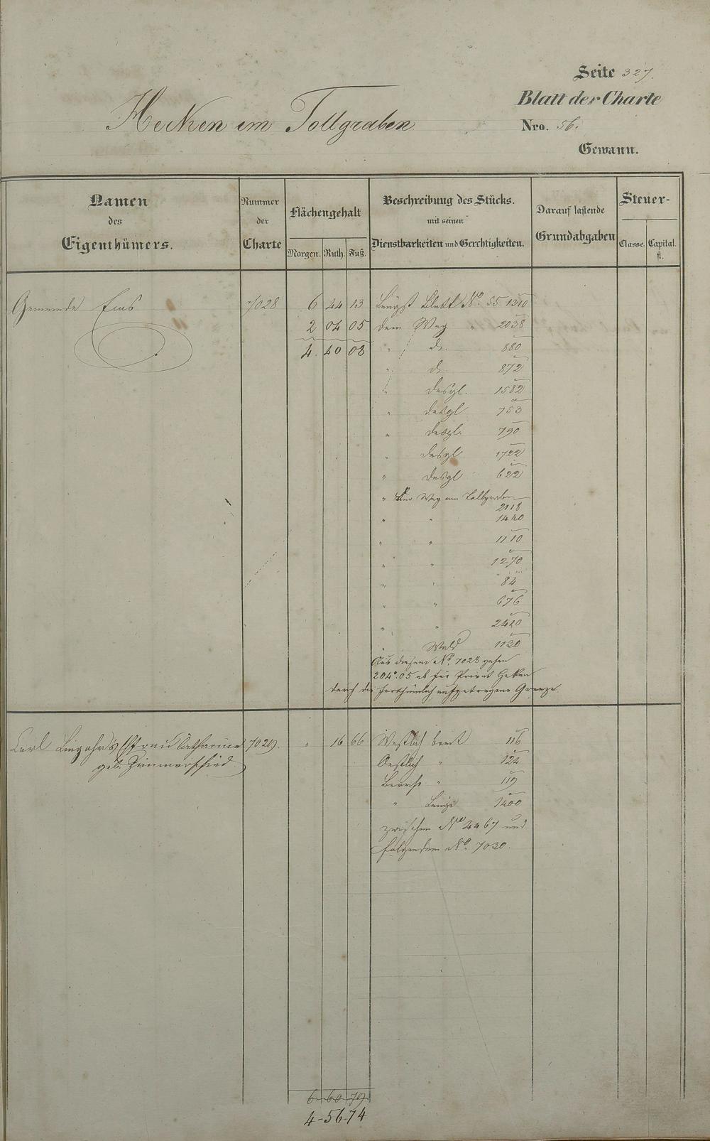 Lagerbuch 1838 aufgestellt von Geometer Gottschalk Nr. 6350 - 7107