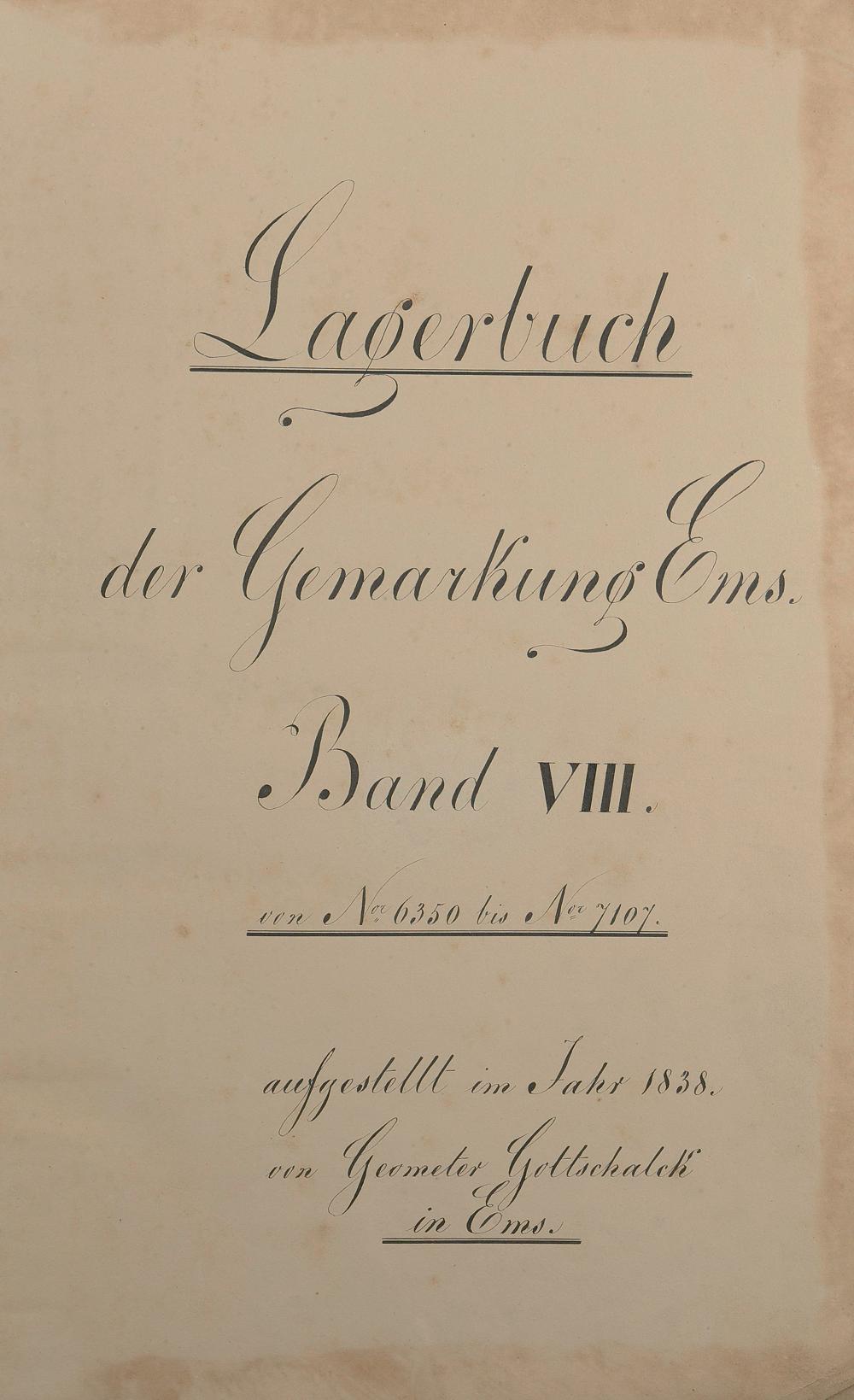Lagerbuch 1838 aufgestellt von Geometer Gottschalk Nr. 6350 - 7107