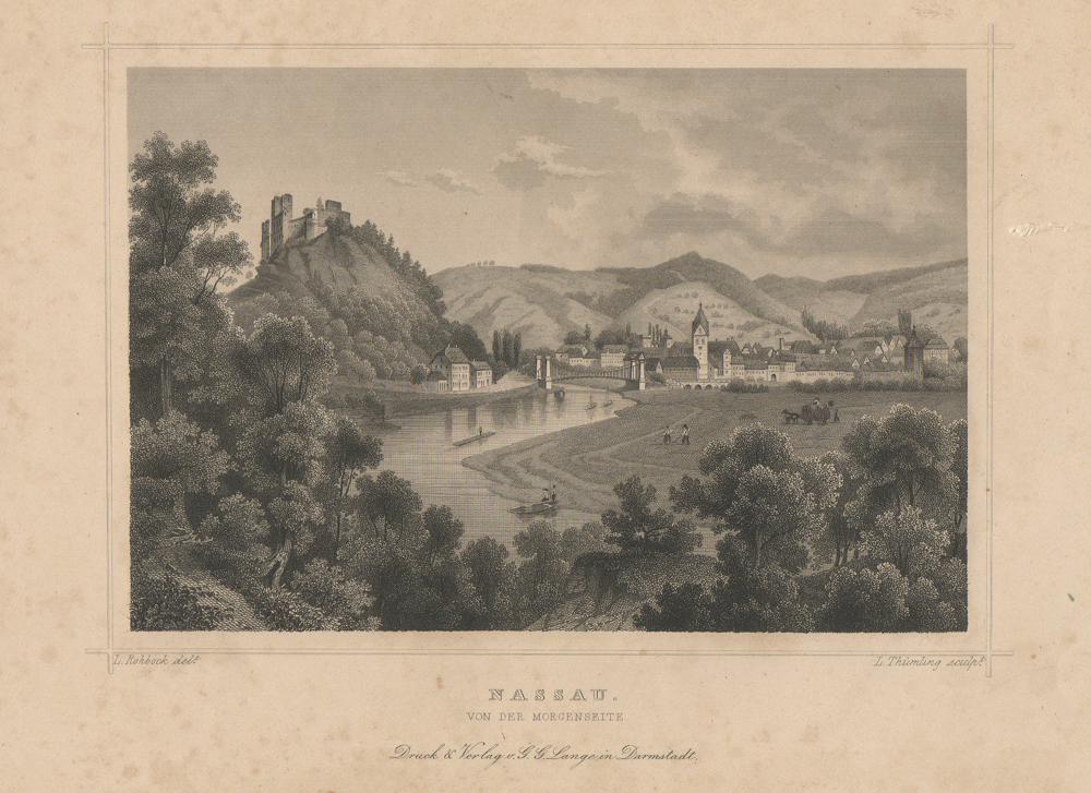 Total von Osten auf Nassau mit Lahnbrücke und Burg