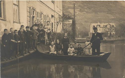 Hochwasser Nov. 1924 Hauptstraße und Wirtshaus an der Lahn des Joh. Sauer Fachbach Koblenzer Straße Nr. 84