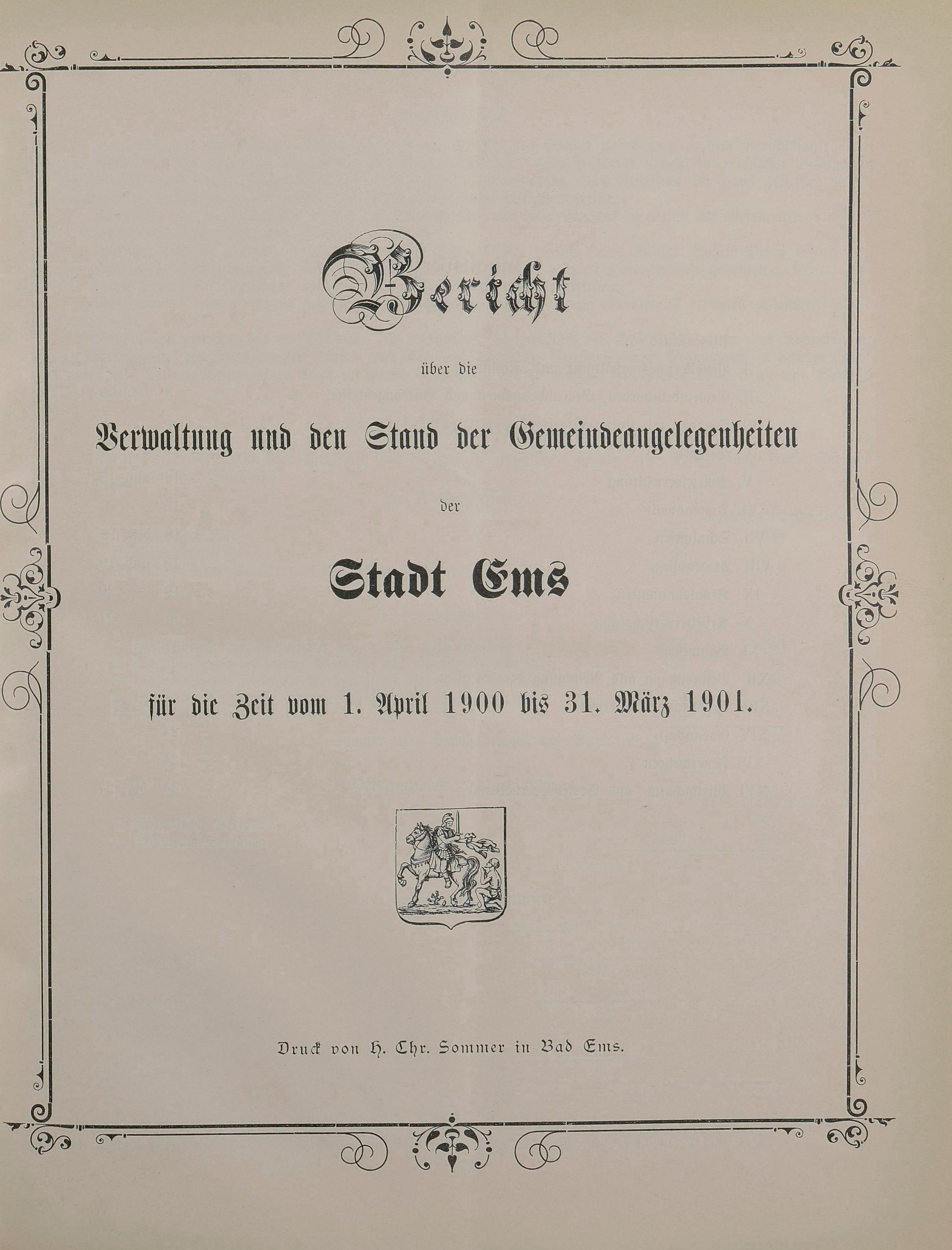 Bericht über die Verwaltung und den Stand der Gemeindeangelegenheiten der Stadt Ems für die Zeit vom 1. April 1900 bis 31. März 1901