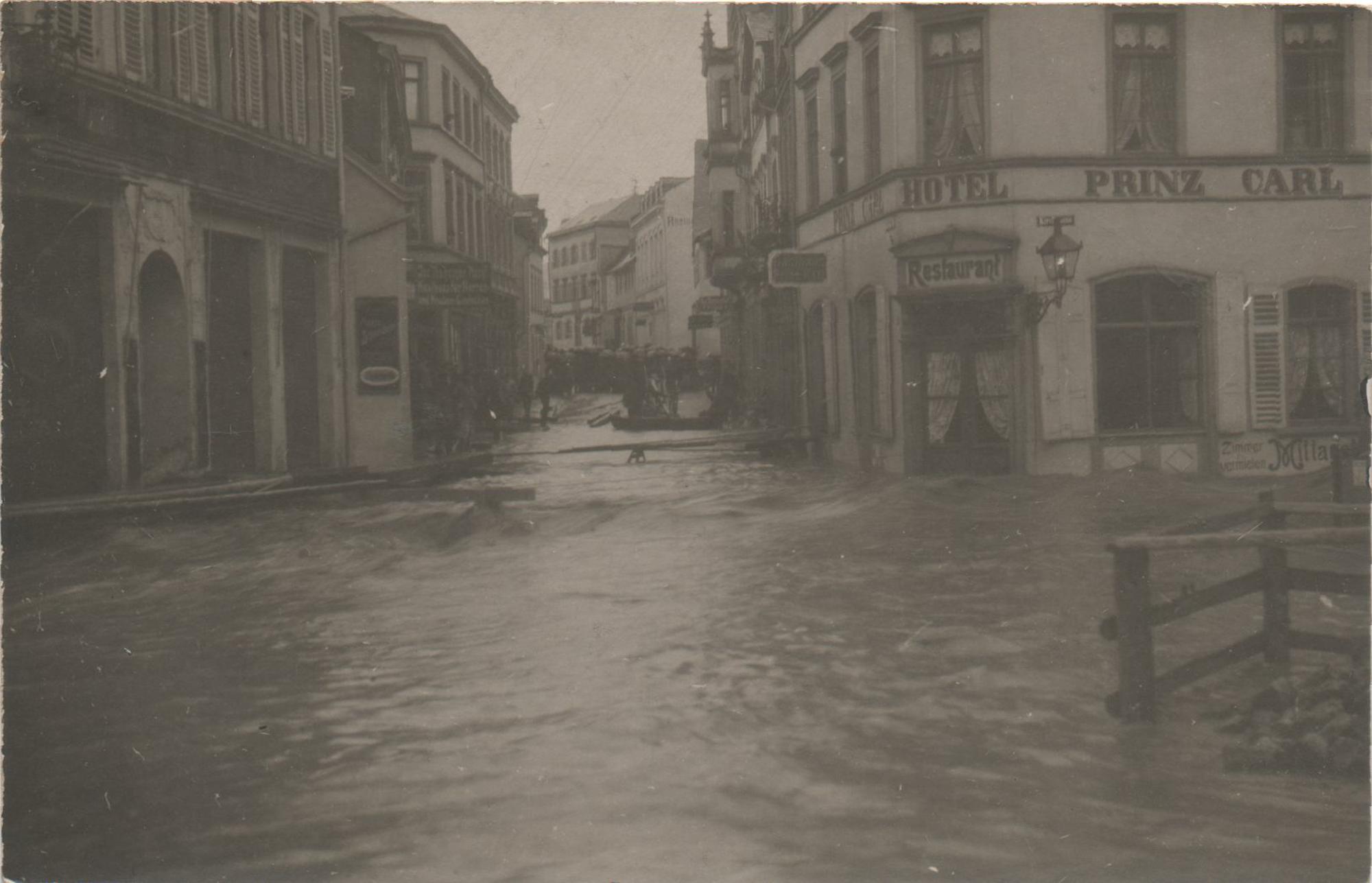Ecke Koblenzer Straße - Kirchgasse bei Hochwasser des Emsbaches