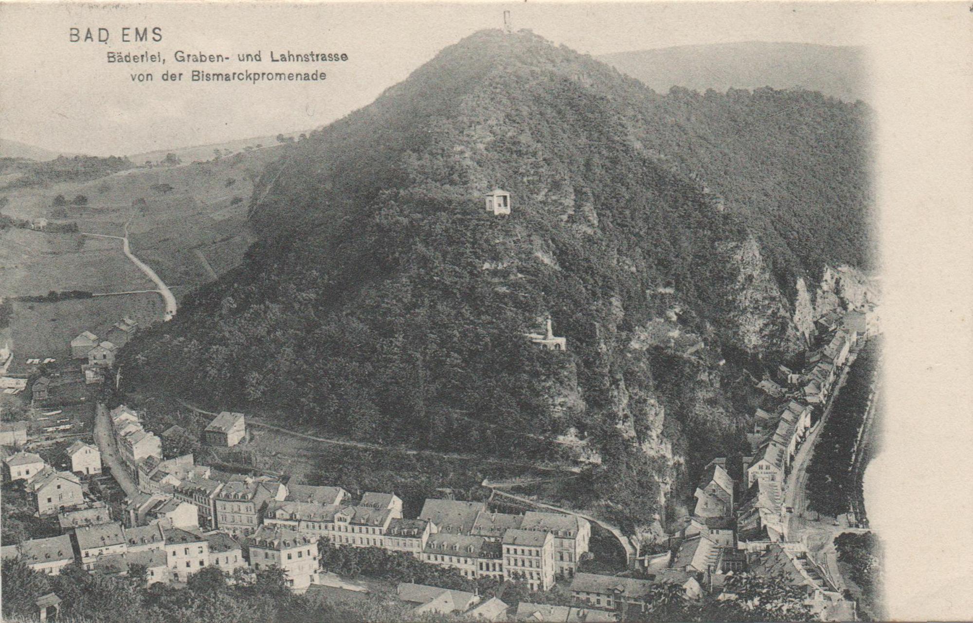Total von Westen von der Bismarckpromenade mit Bäderlei, Graben- und Lahnstraße