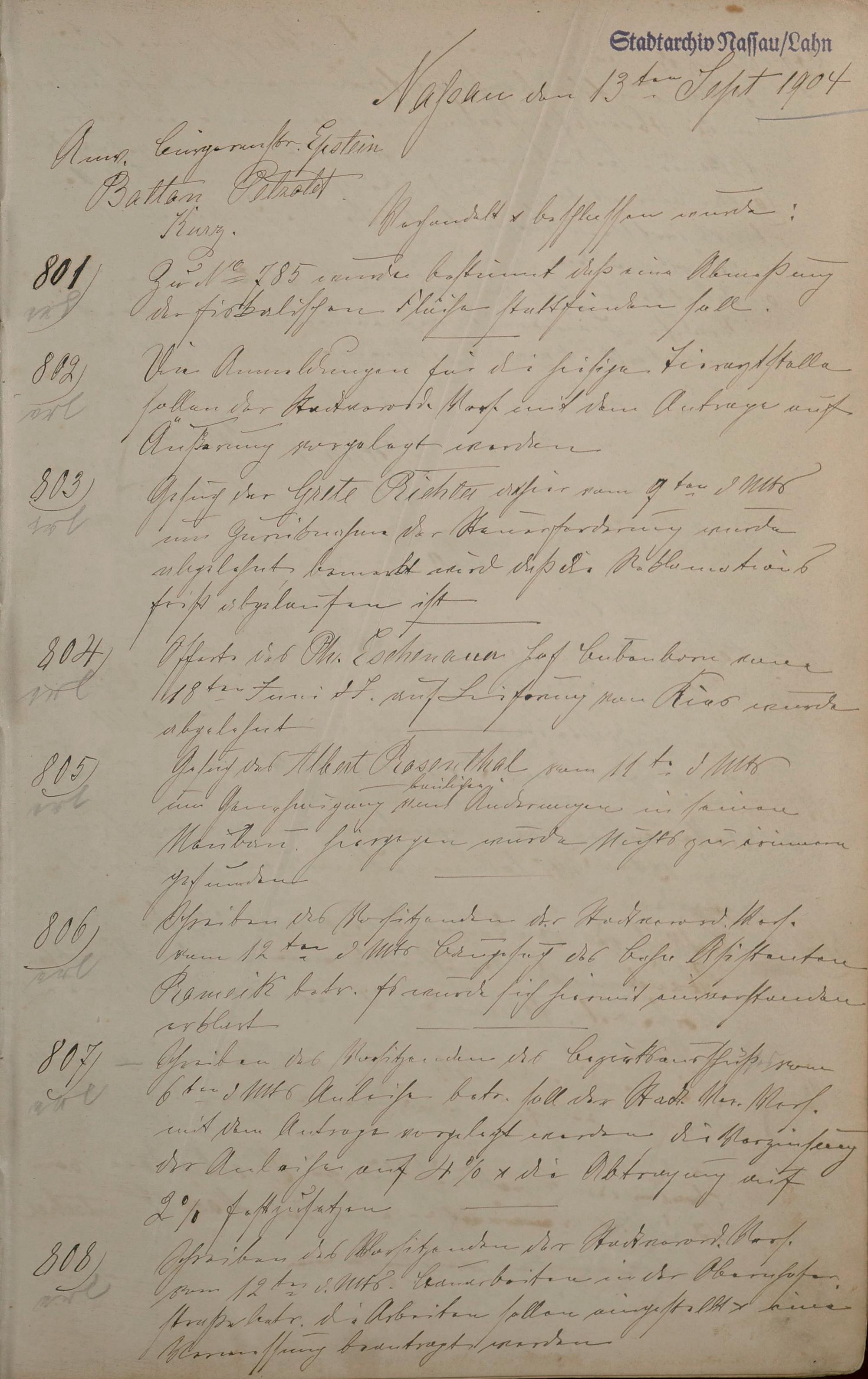 Beschlüsse 801 - 1151 vom 13. Sept. 1904 - 28. Dez. 1904