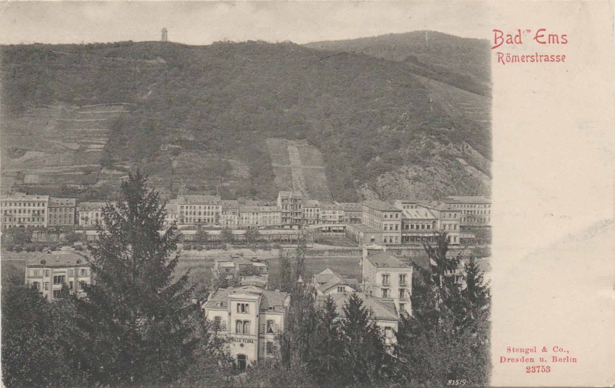 Total von Süden mit Römerstraße, Kursaal und Bismarckturm.