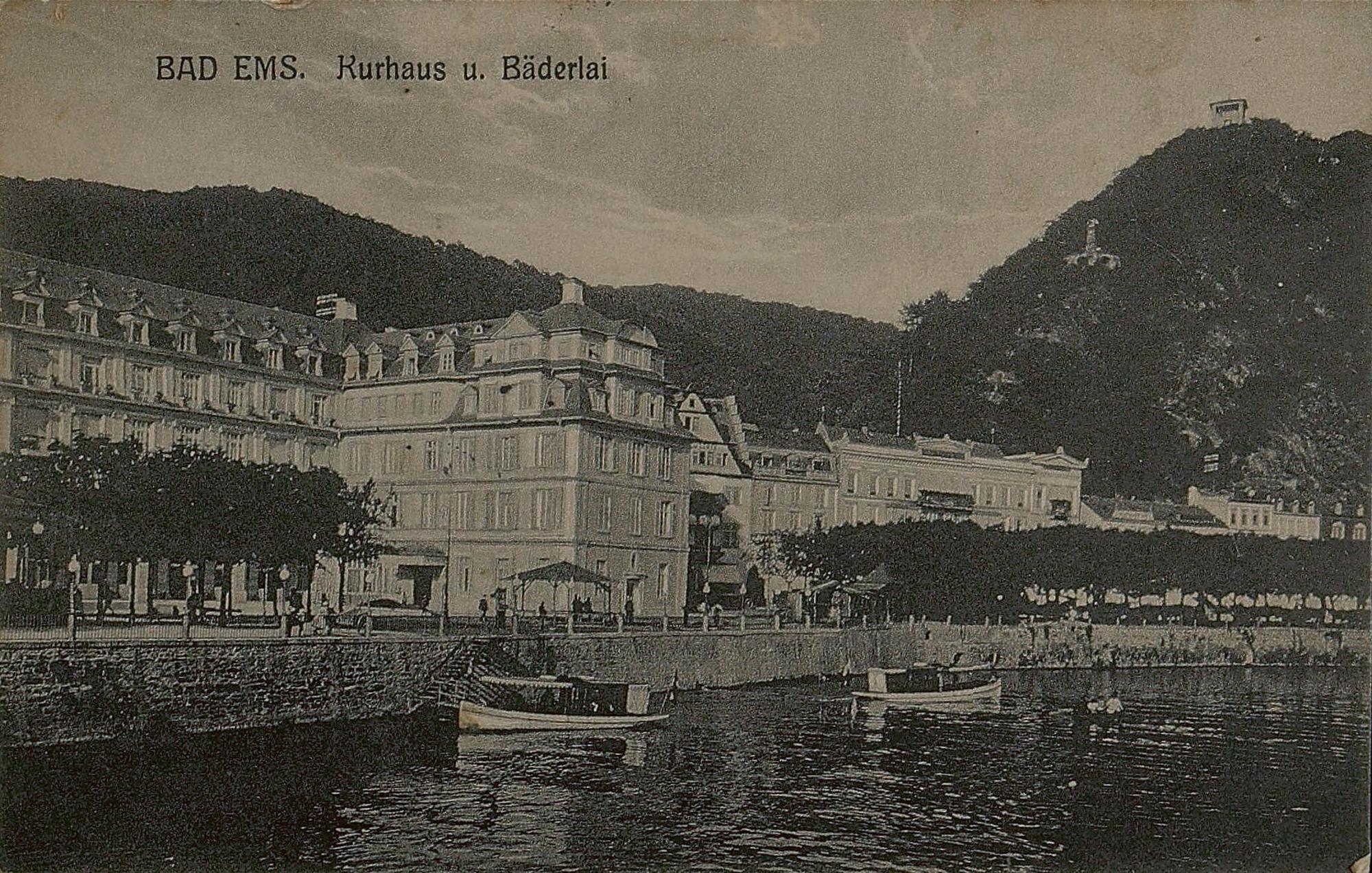 Lahnpartie mit Kurhaus/Kurhotel, Lahnstraße, Bäderley und Ausflugsschiffen