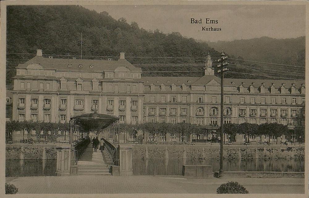 Lahnpartie mit Kurhaus/Kurhotel und Gitternetzbrücke