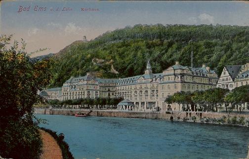 Lahnpartie mit Kurhaus/Kurhotel, Steinernem Haus und Ausflugsschiff