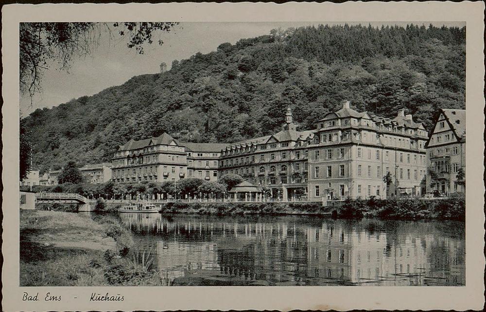 Lahnpartie mit Kurhaus/Kurhotel, Gitternetzbrücke und Steinernem Haus