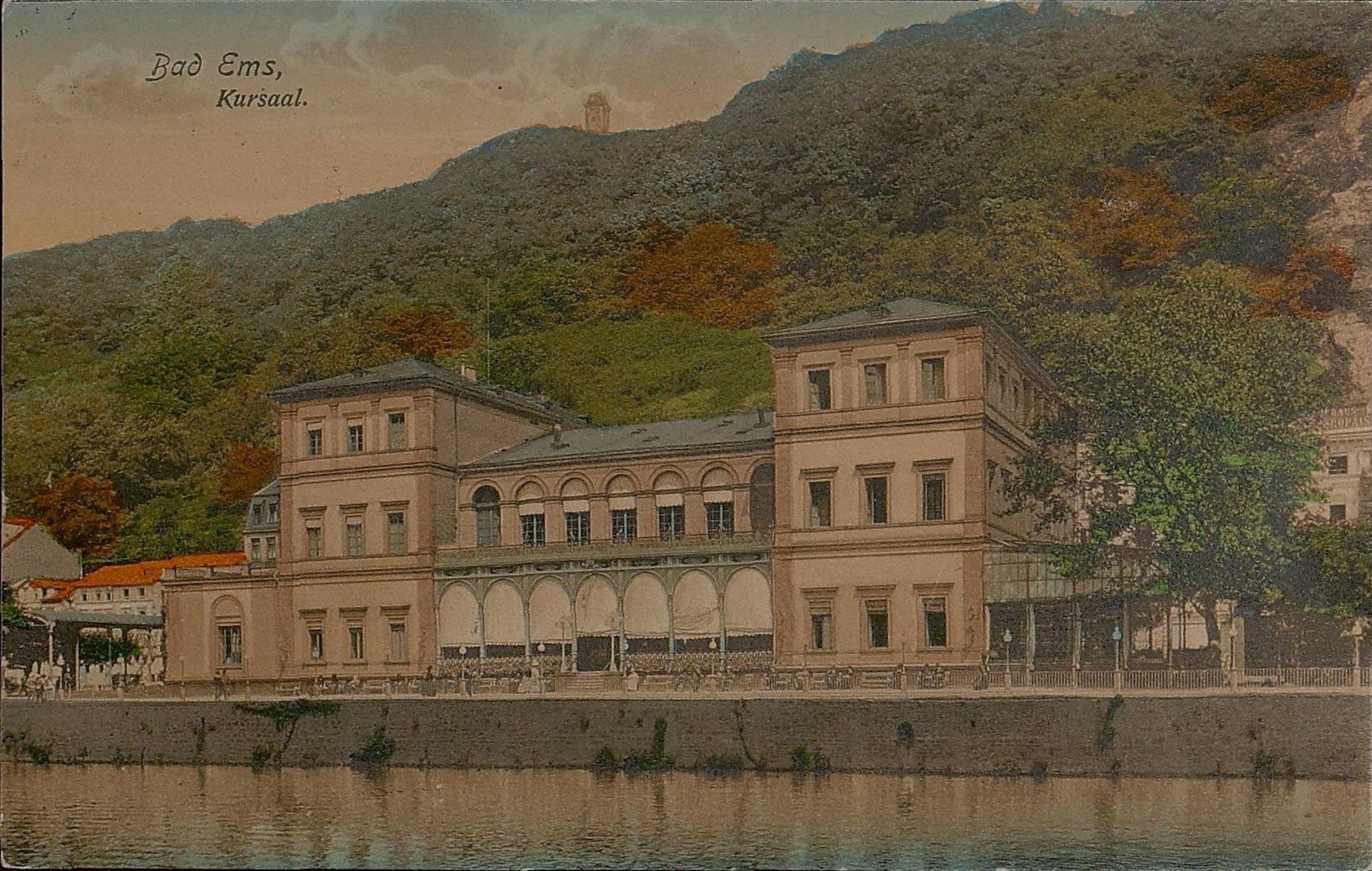 Lahnpartie mit Kursaal und Bismarckturm