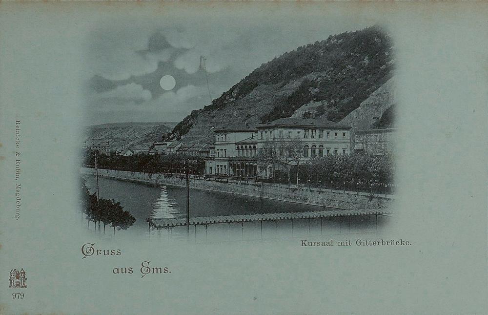 Lahnpartie mit Kursaal und Gitternetzbrücke