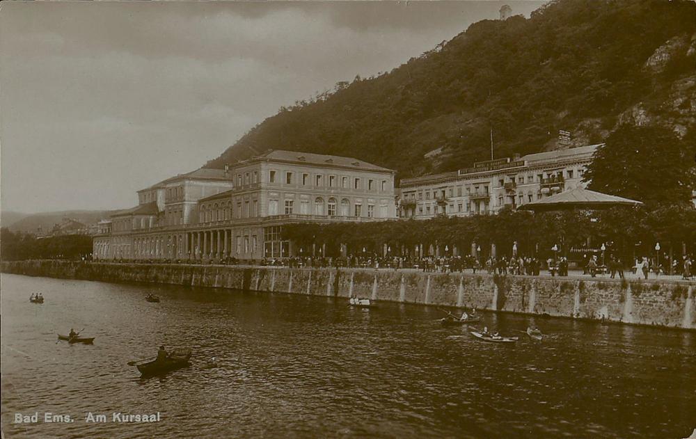 Lahnpartie mit Kursaal und Paddel- und Ruderbooten