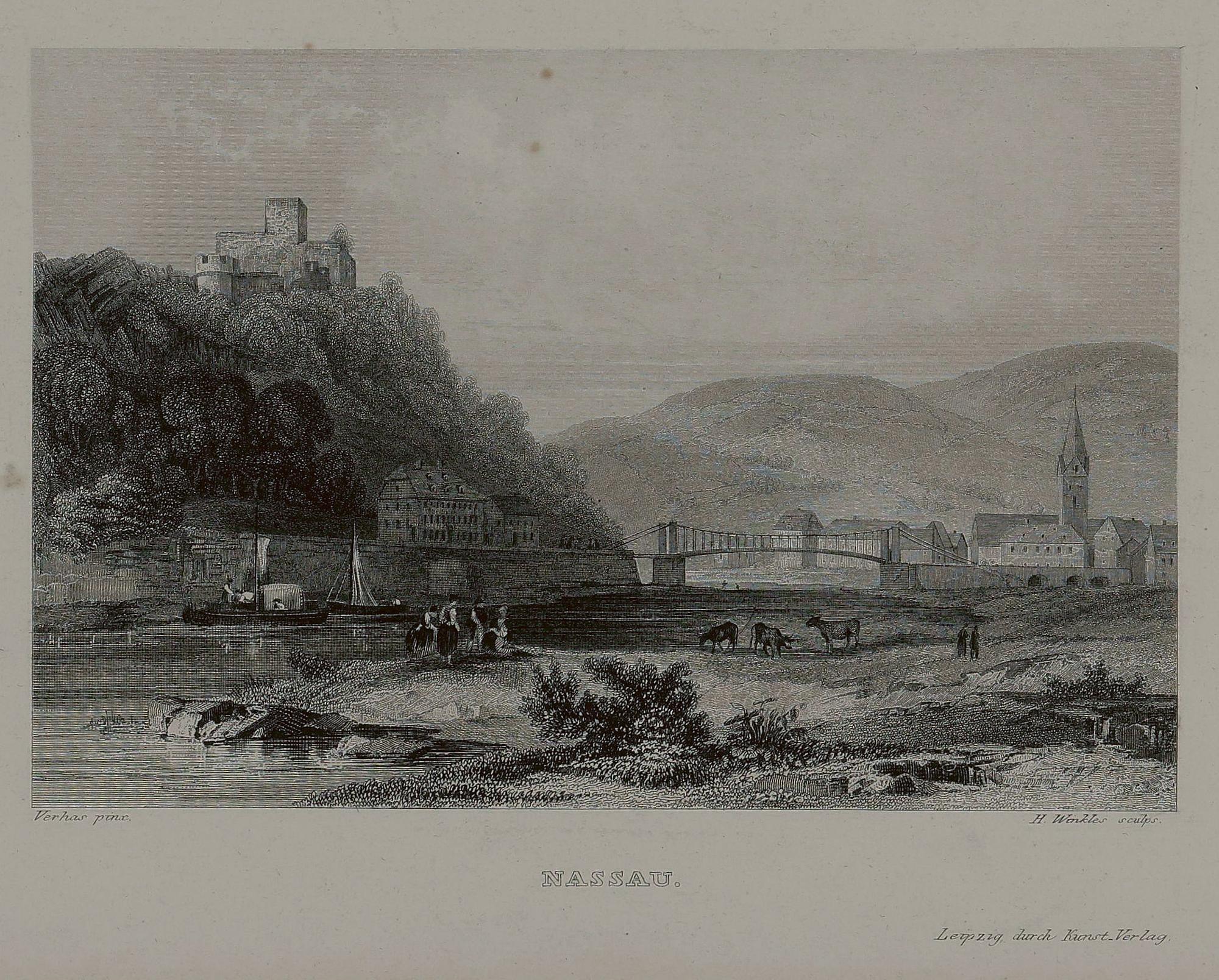 Lahnpartie von Osten mit Lahnbrücke und Burg