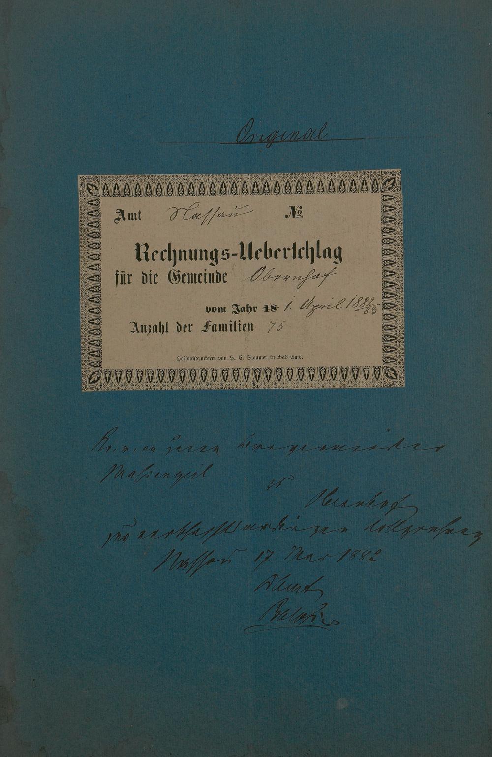Haushaltsplan 1882 - 1883