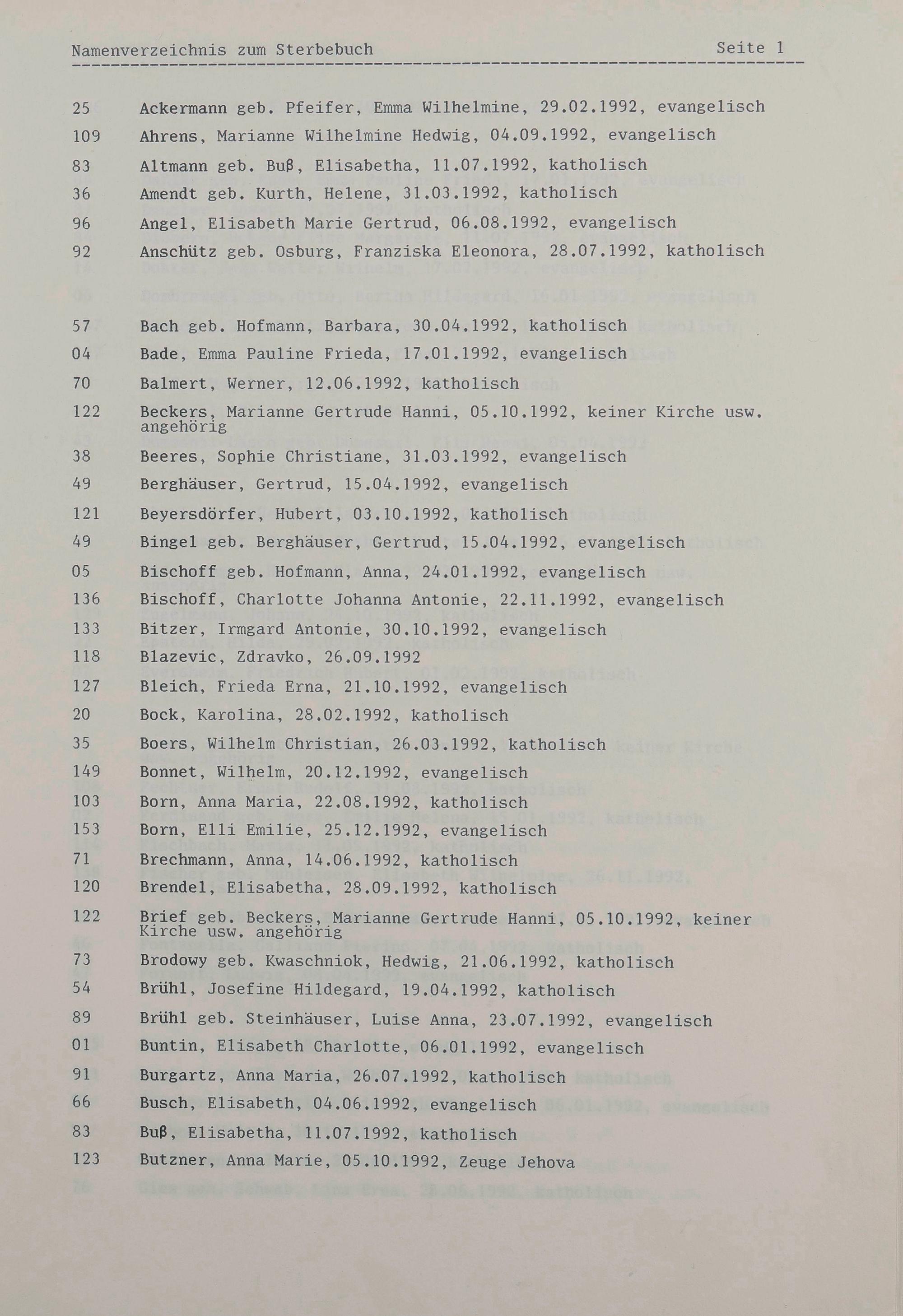 Sterberegister 1992