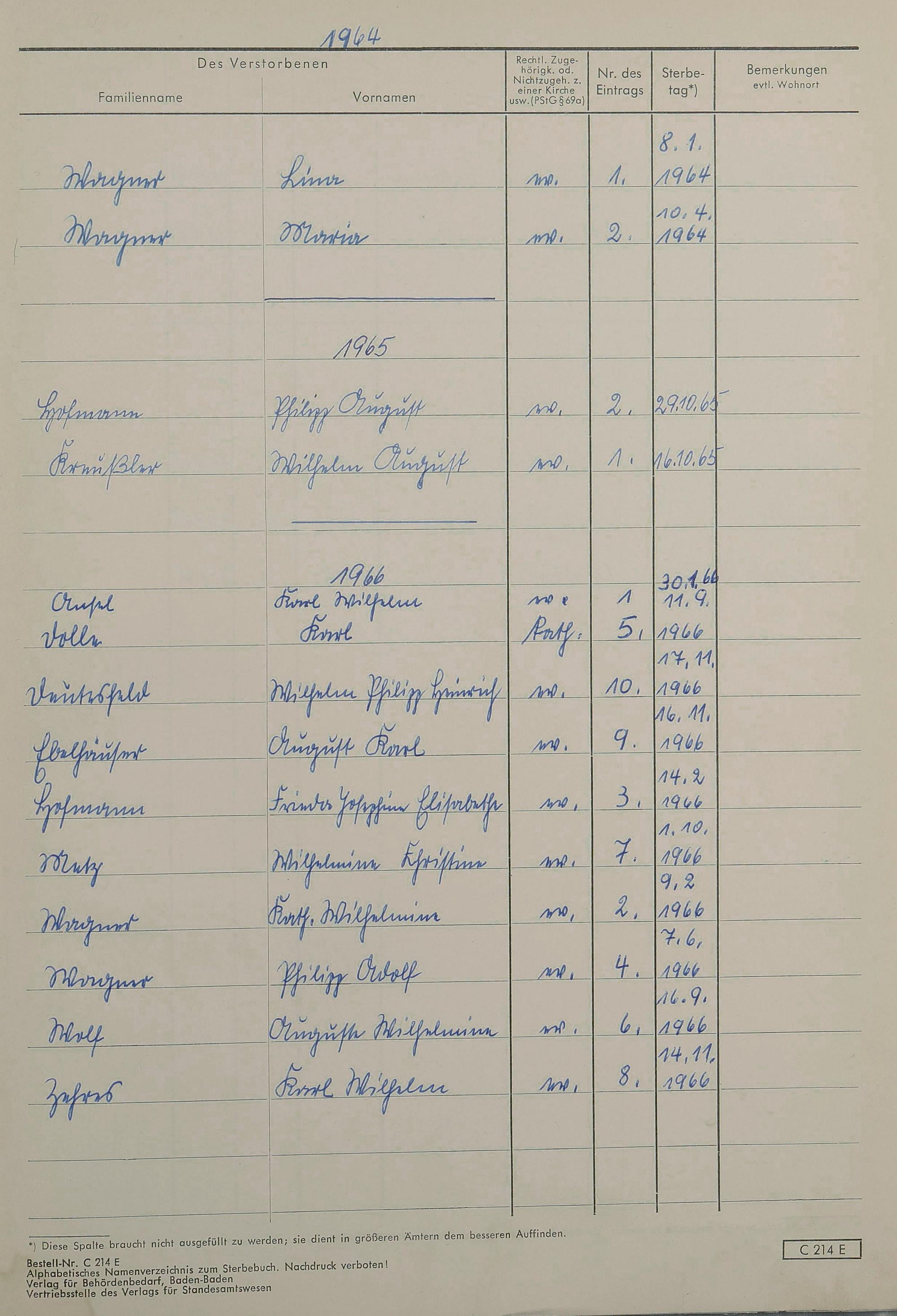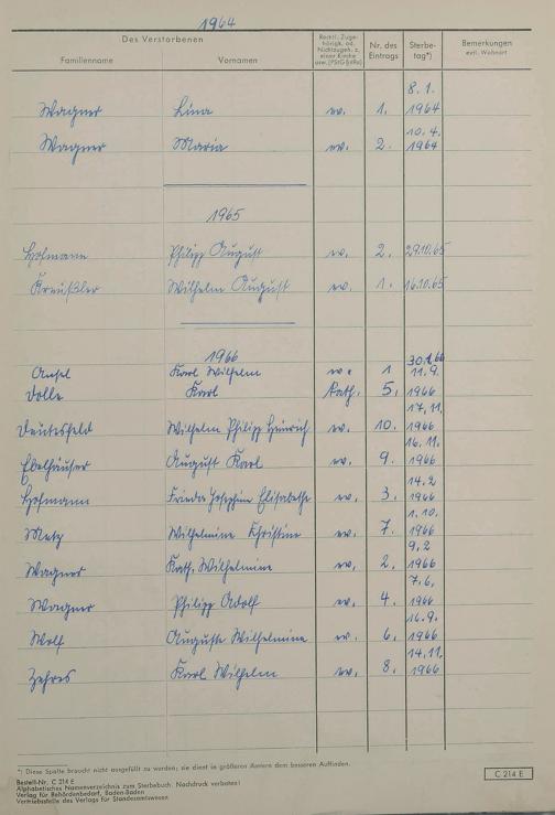 Sterberegister 1966