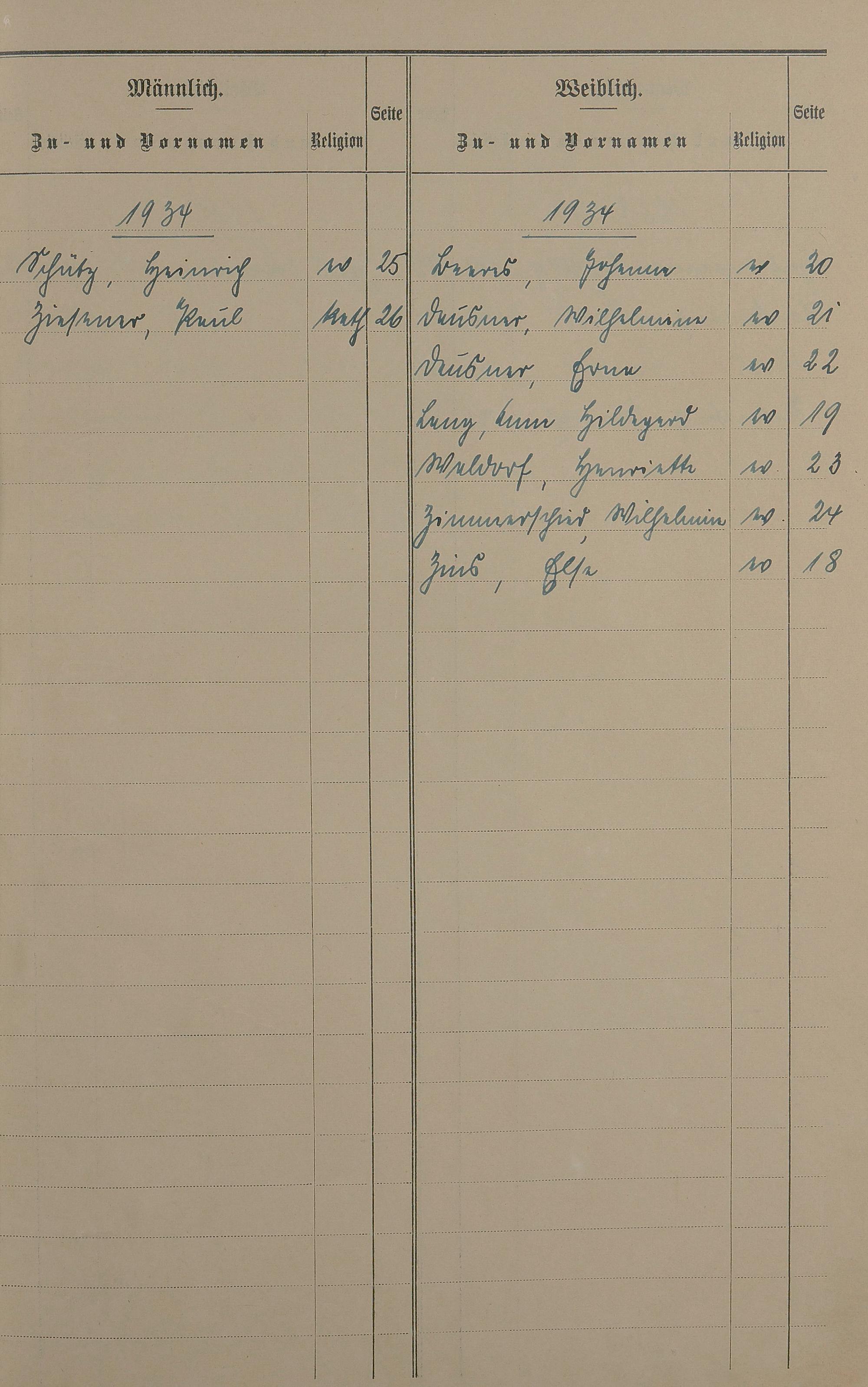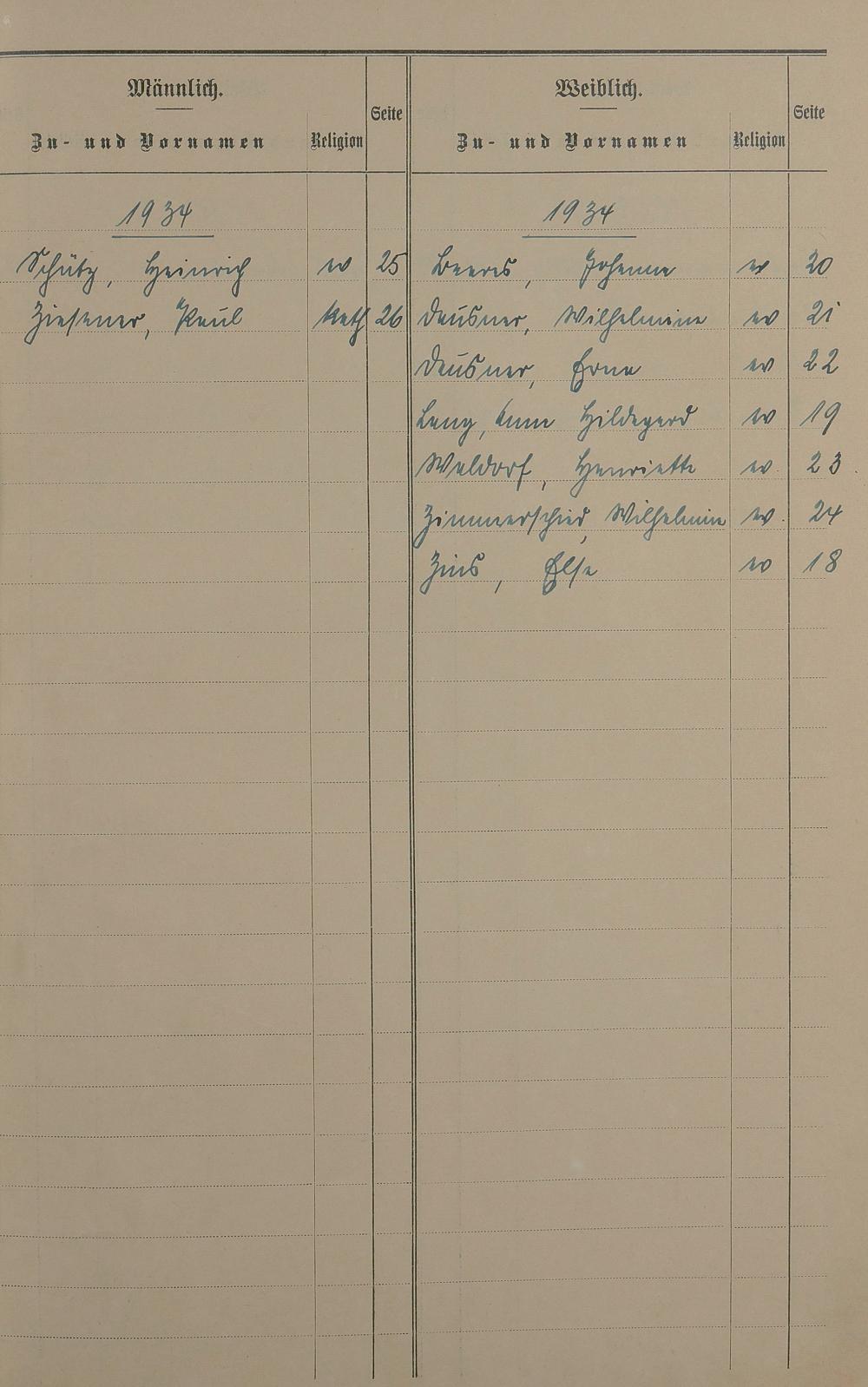 Sterberegister 1934
