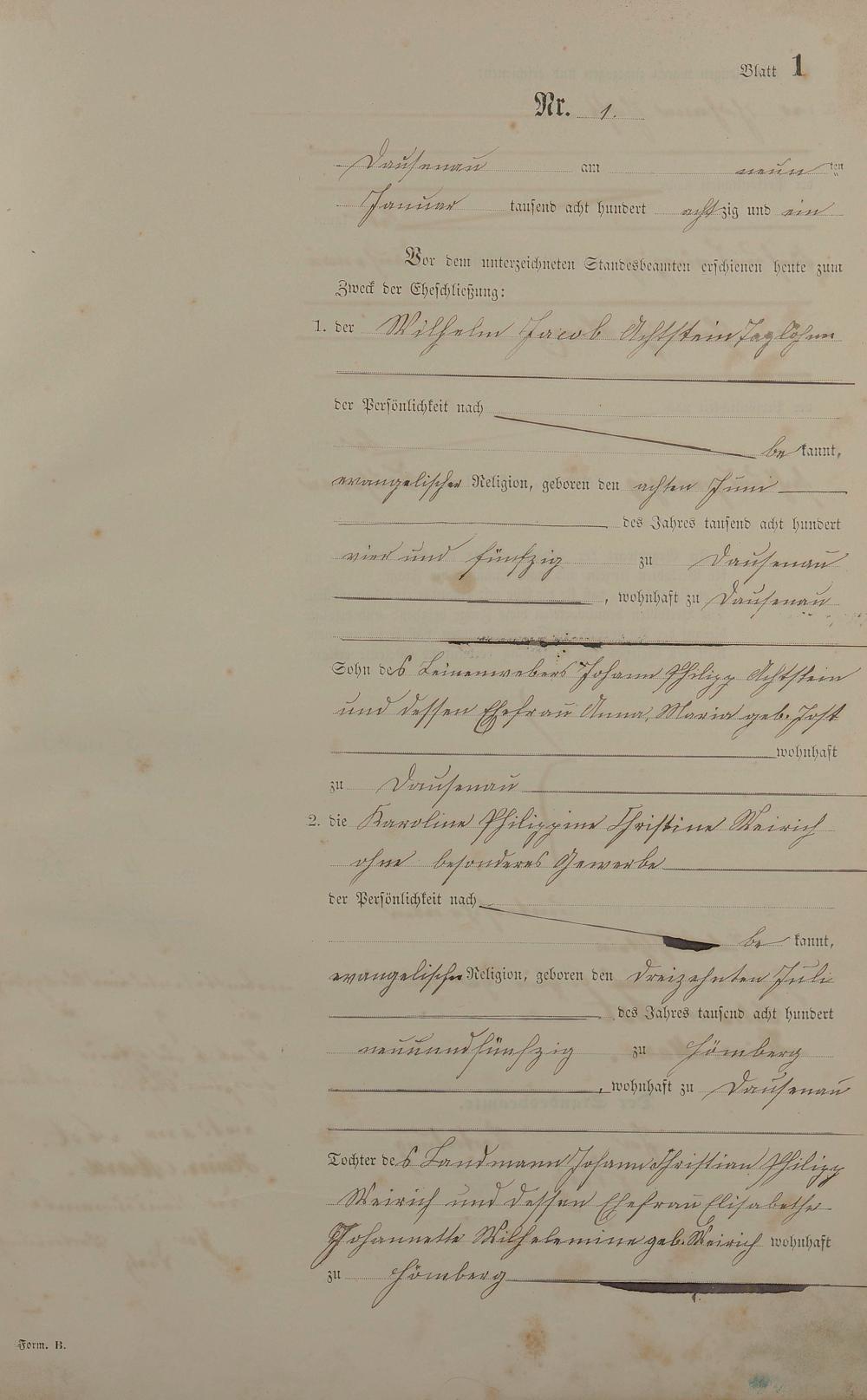 Heiratsregister 1881
