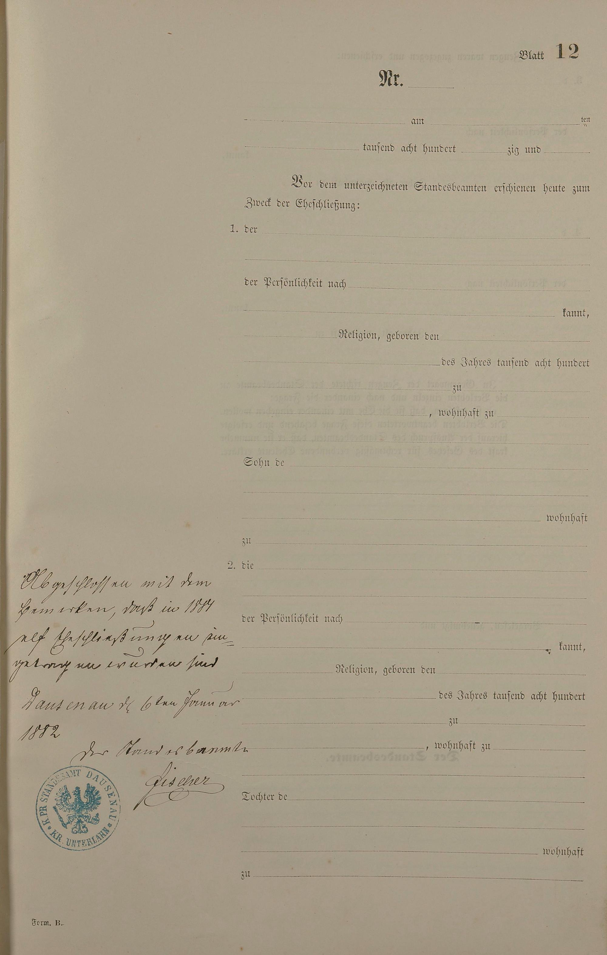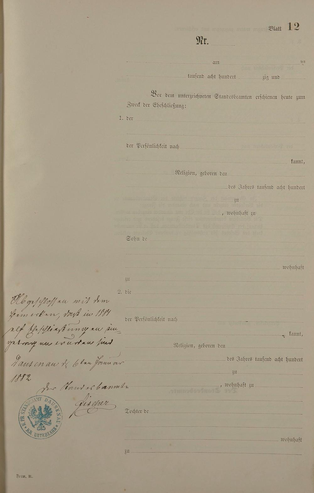 2004/08: Heiratsregister 1881