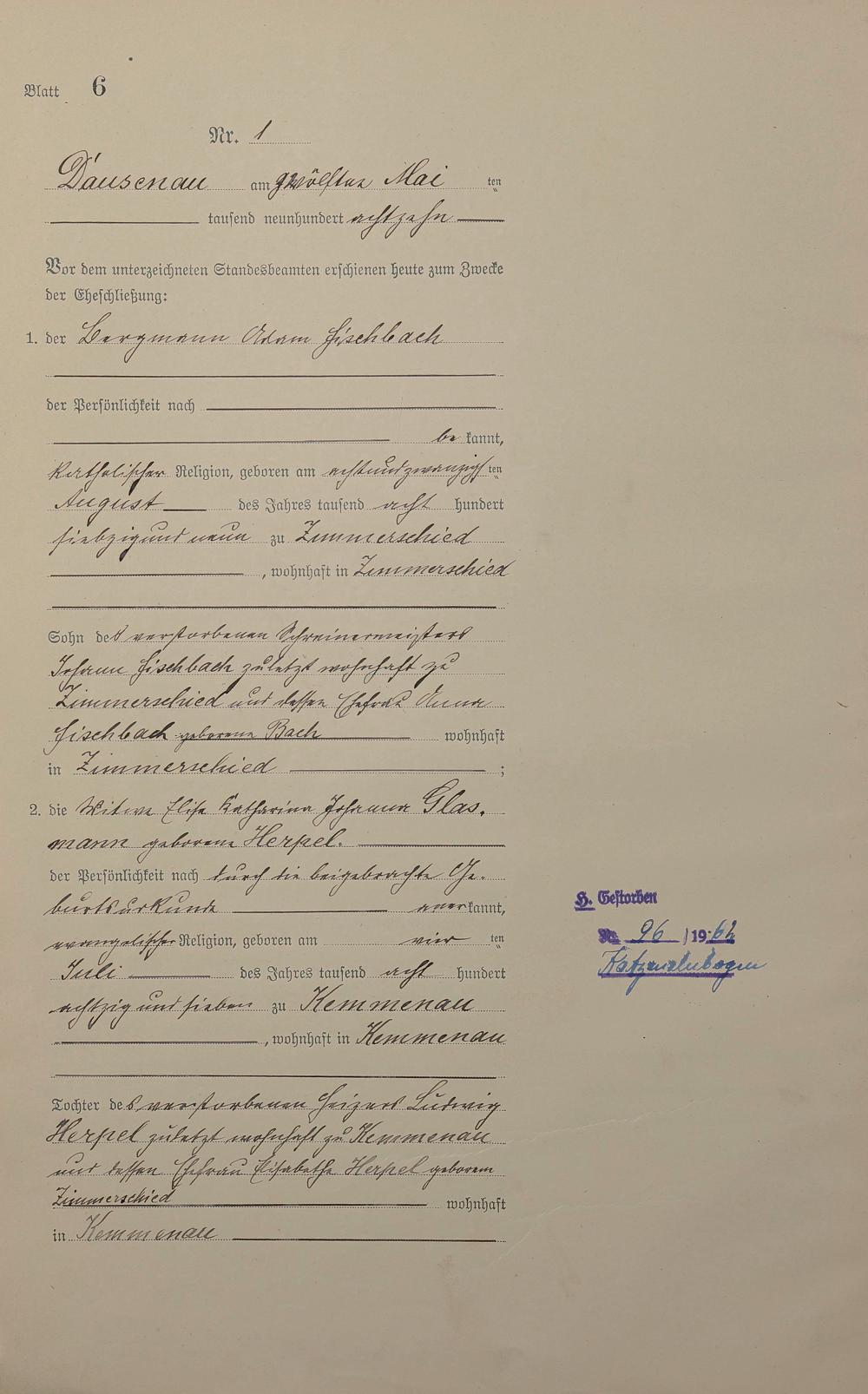 2006/02: Heiratsregister 1918