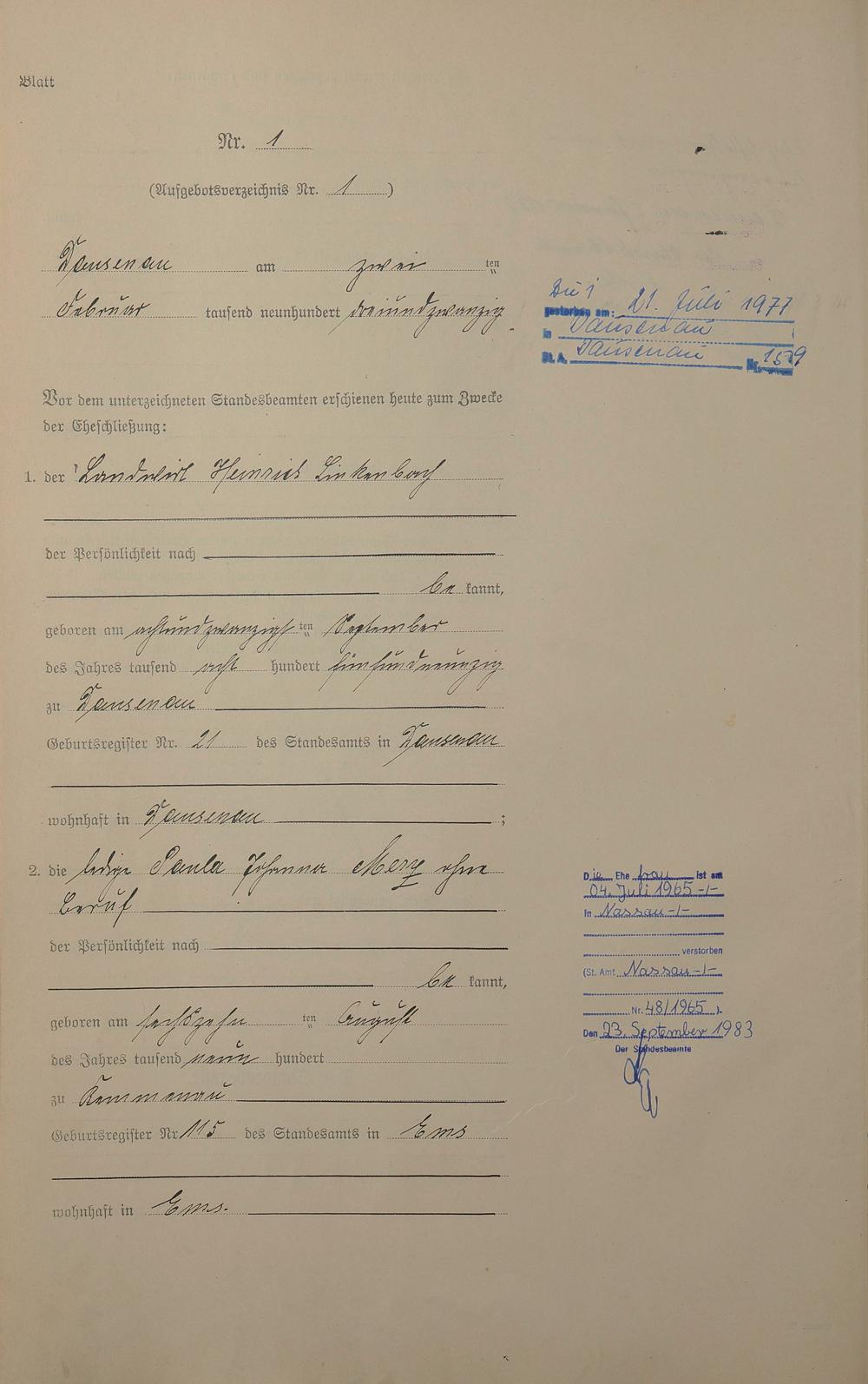 Heiratsregister 1923