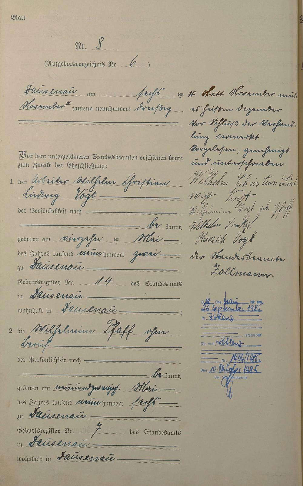2006/14: Heiratsregister 1930