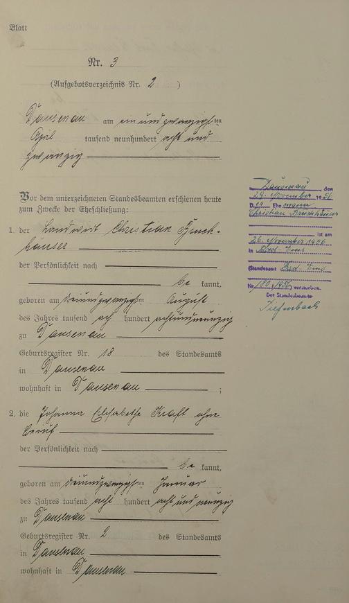 Heiratsregister 1928