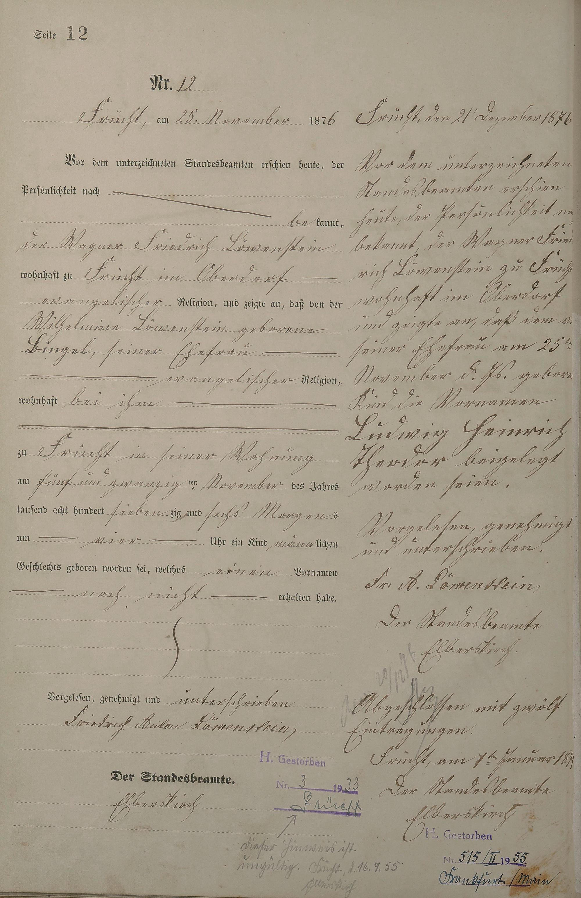 Geburtsregister 1876