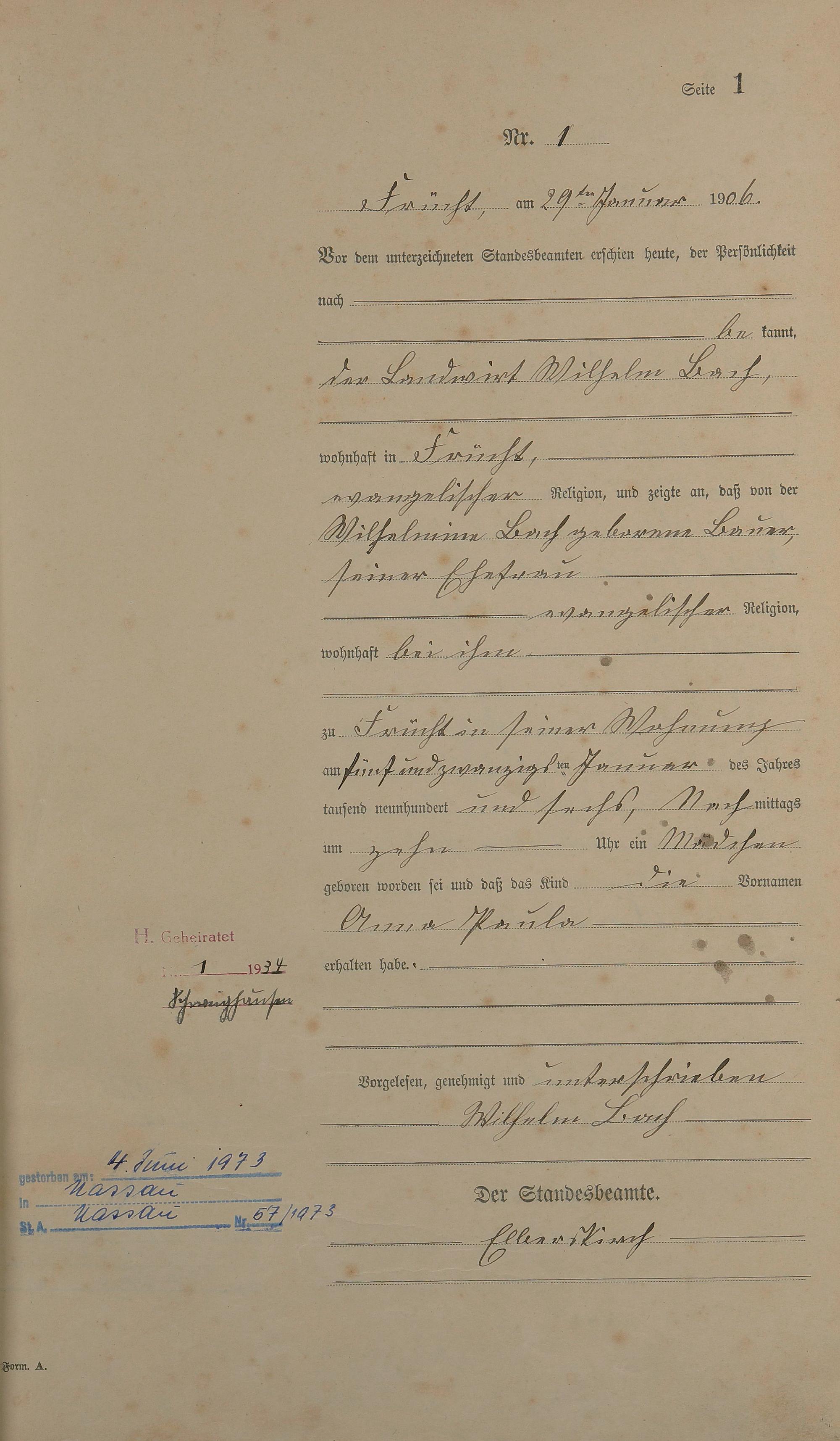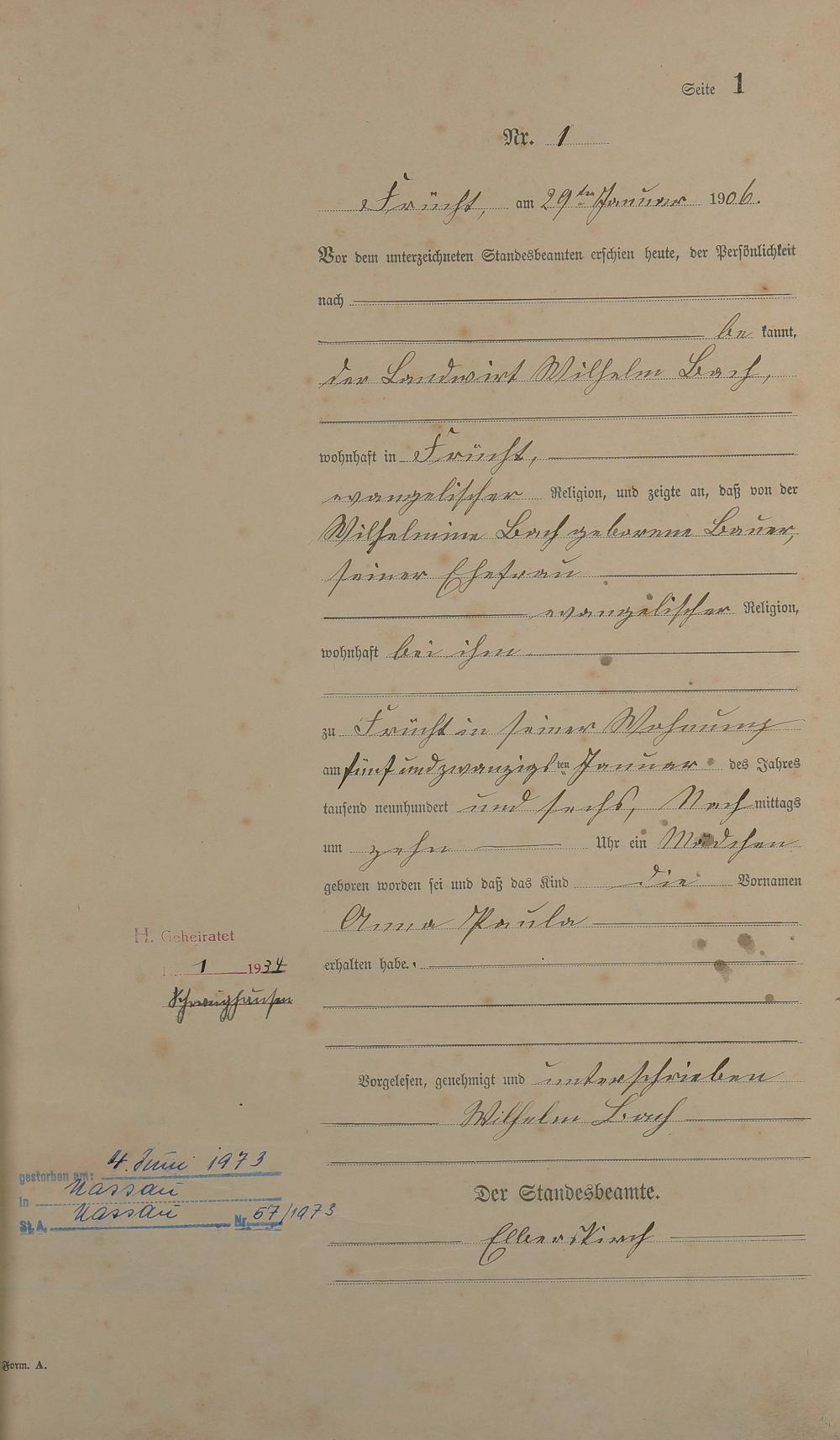 Geburtsregister 1906