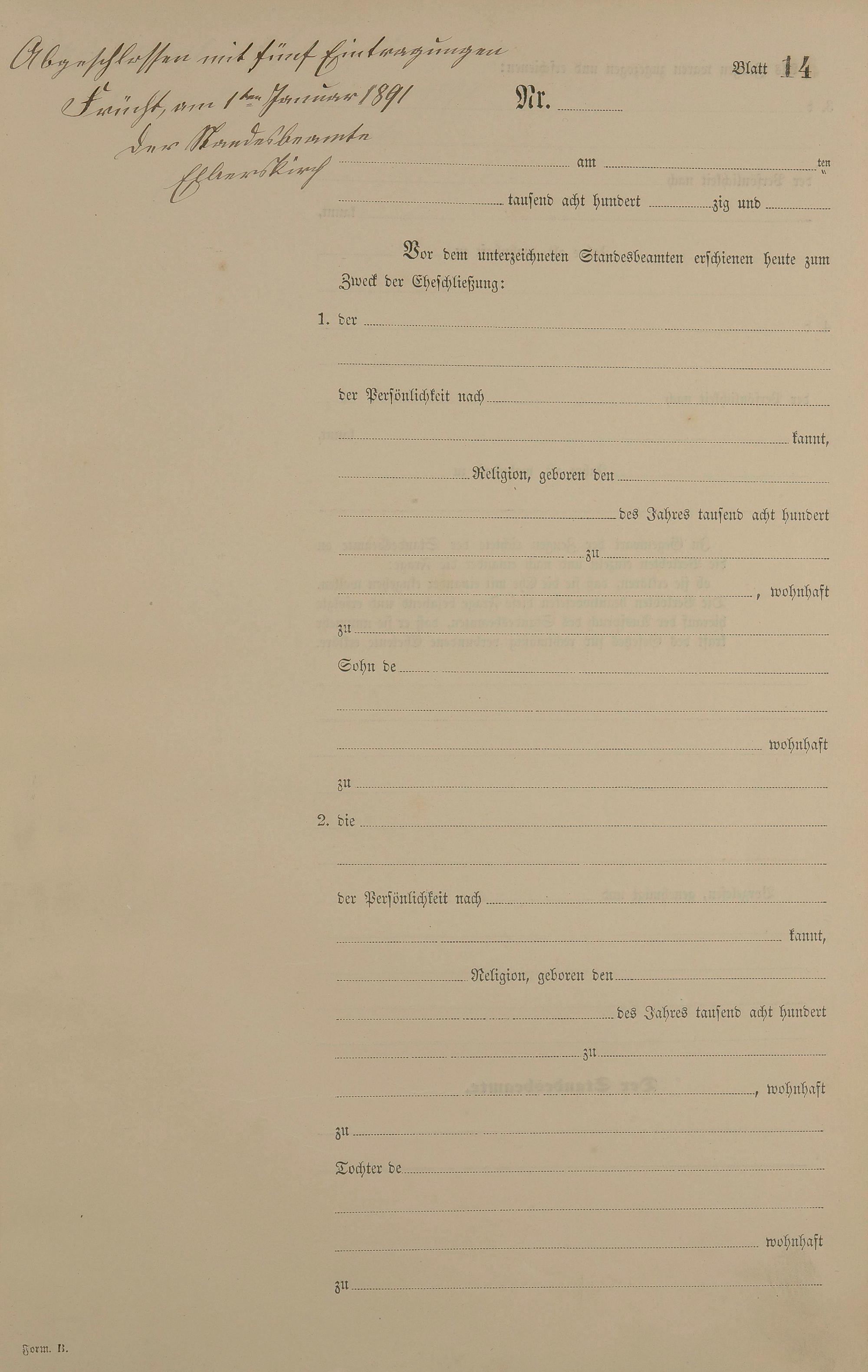 Heiratsregister 1890