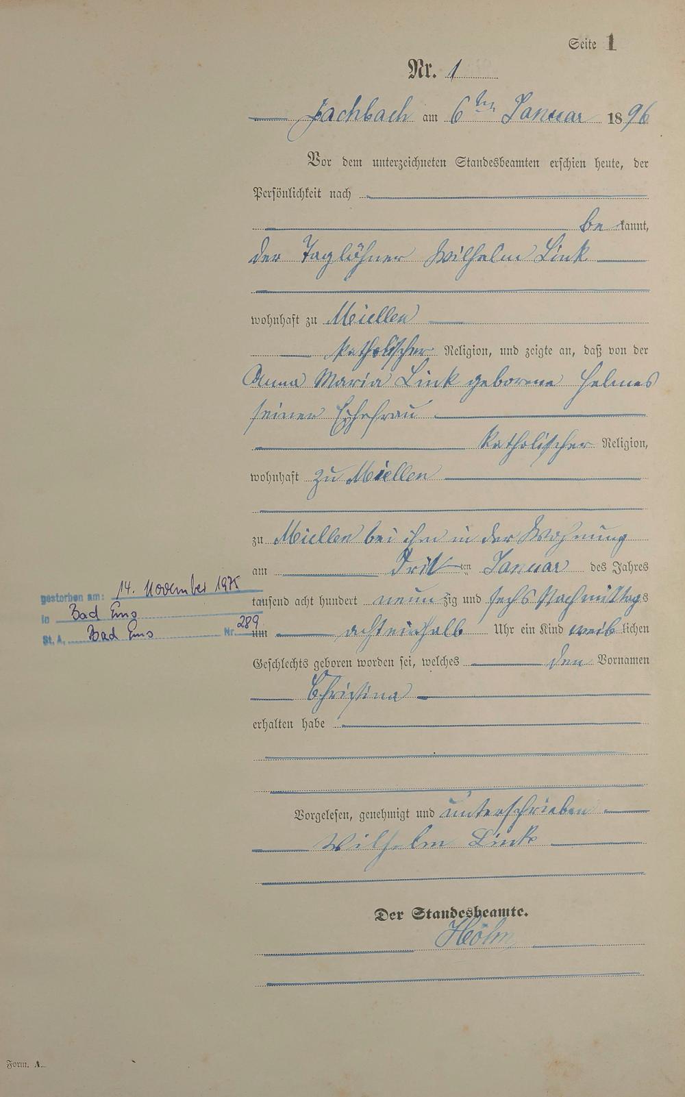 Geburtsregister 1896
