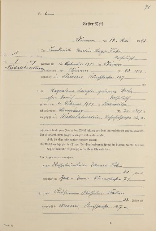 Heiratsregister 1942