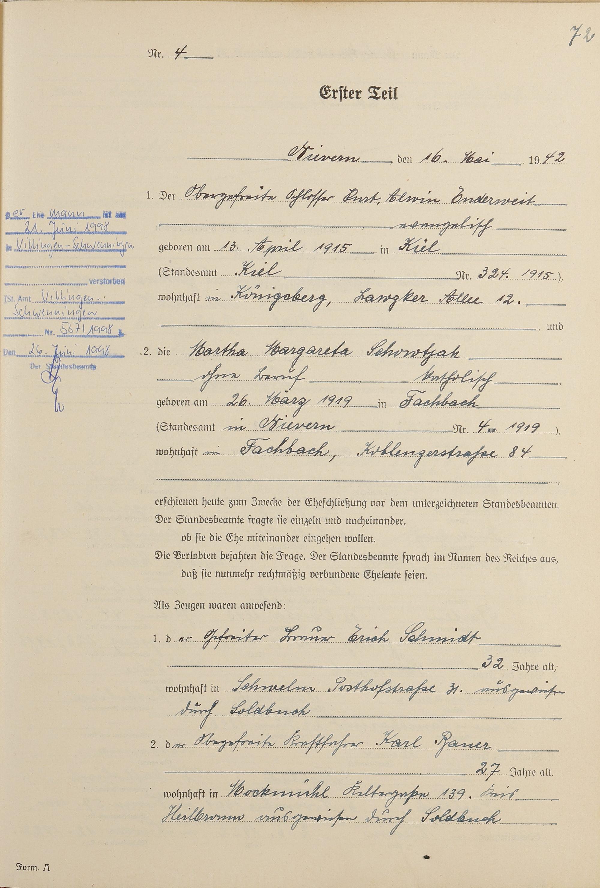 Heiratsregister 1942