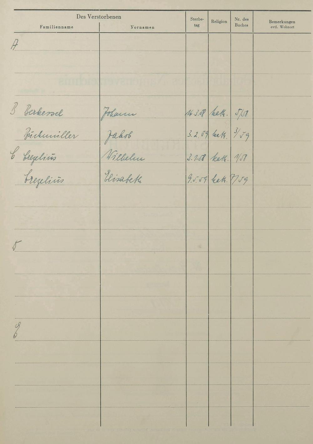 Sterberegister 1949-1972