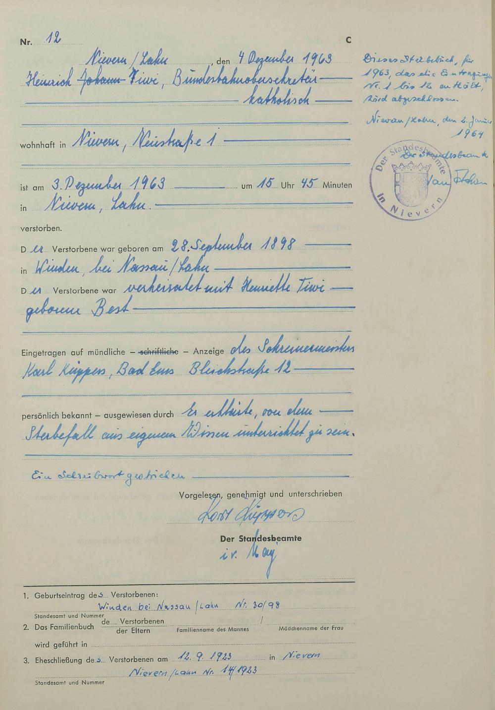 Sterberegister 1963